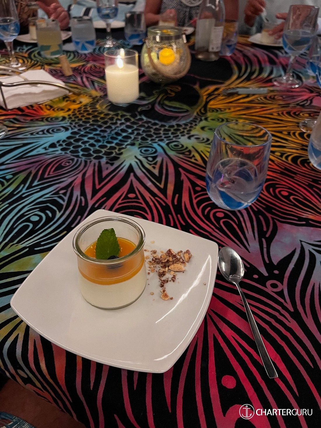 It is also a very luxurious vacation as Shannon Hallett (who is also a sailor in her own right,) is a phenomenal chef and can match her menu to your dietary needs. She is quite adept at finding delicious, fresh produce on the islands as well as fish and meat. A sumptuous dinner is never over until it is finished with some type of delectable dessert.