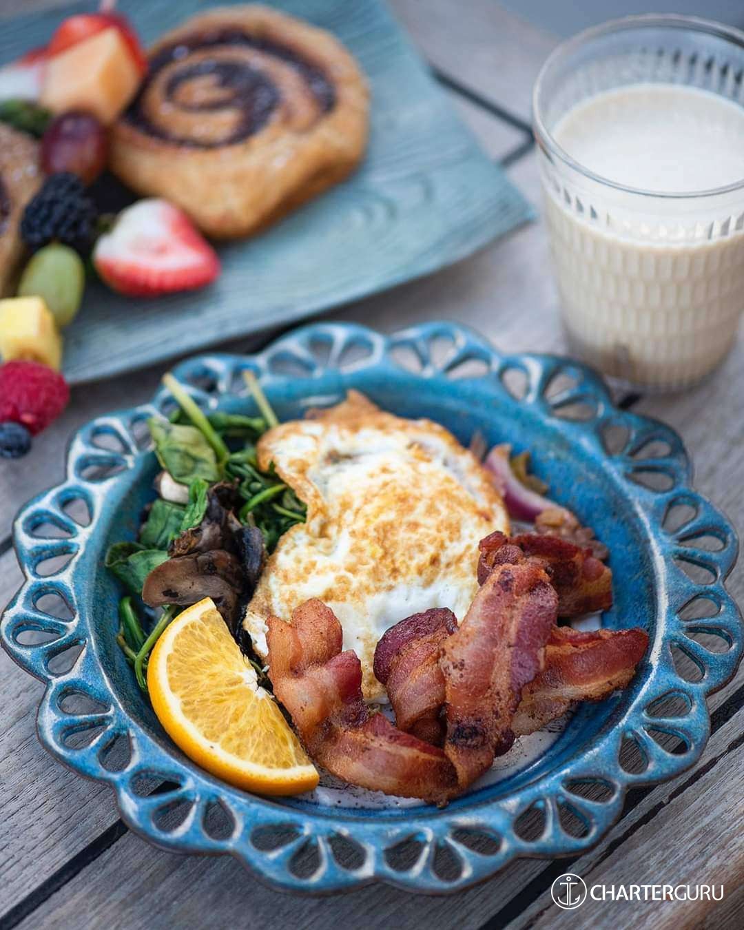 Guests arrive to the yacht at 5pm. Snacks and welcome drink served, this is not an open bar. Dinner is ashore on clients expense. Continental breakfast provided next morning. Vessel departs at noon. BVI Customs fees and cruising permits are included in the rate.