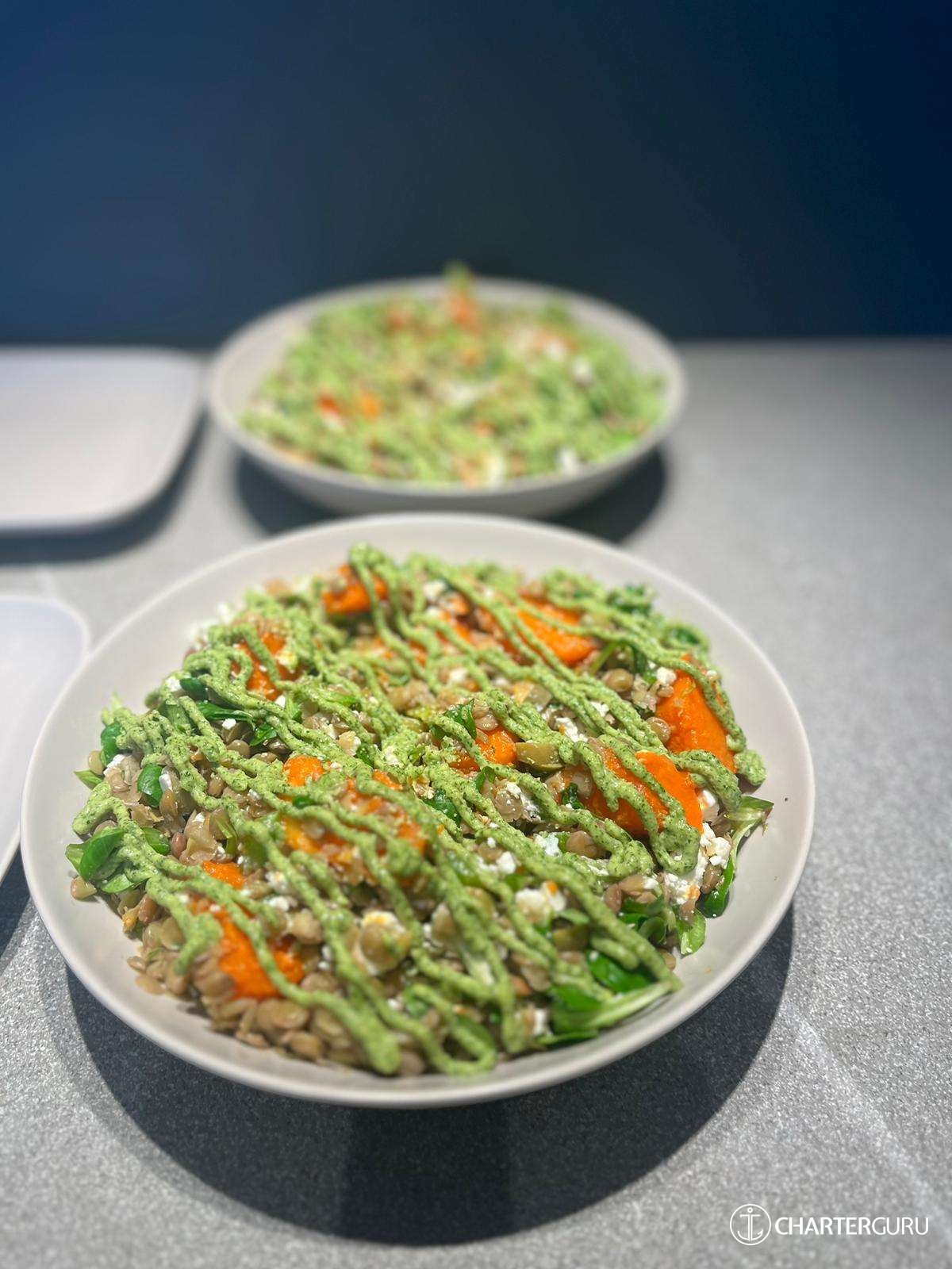 Caitlin's cuisine was so wonderful, every meal was prepared with meticulous care, the flavors were amazing, the presentation spectacular. On top of that they were well balanced nutritionally. They were served without asking, at the perfect time between activities.