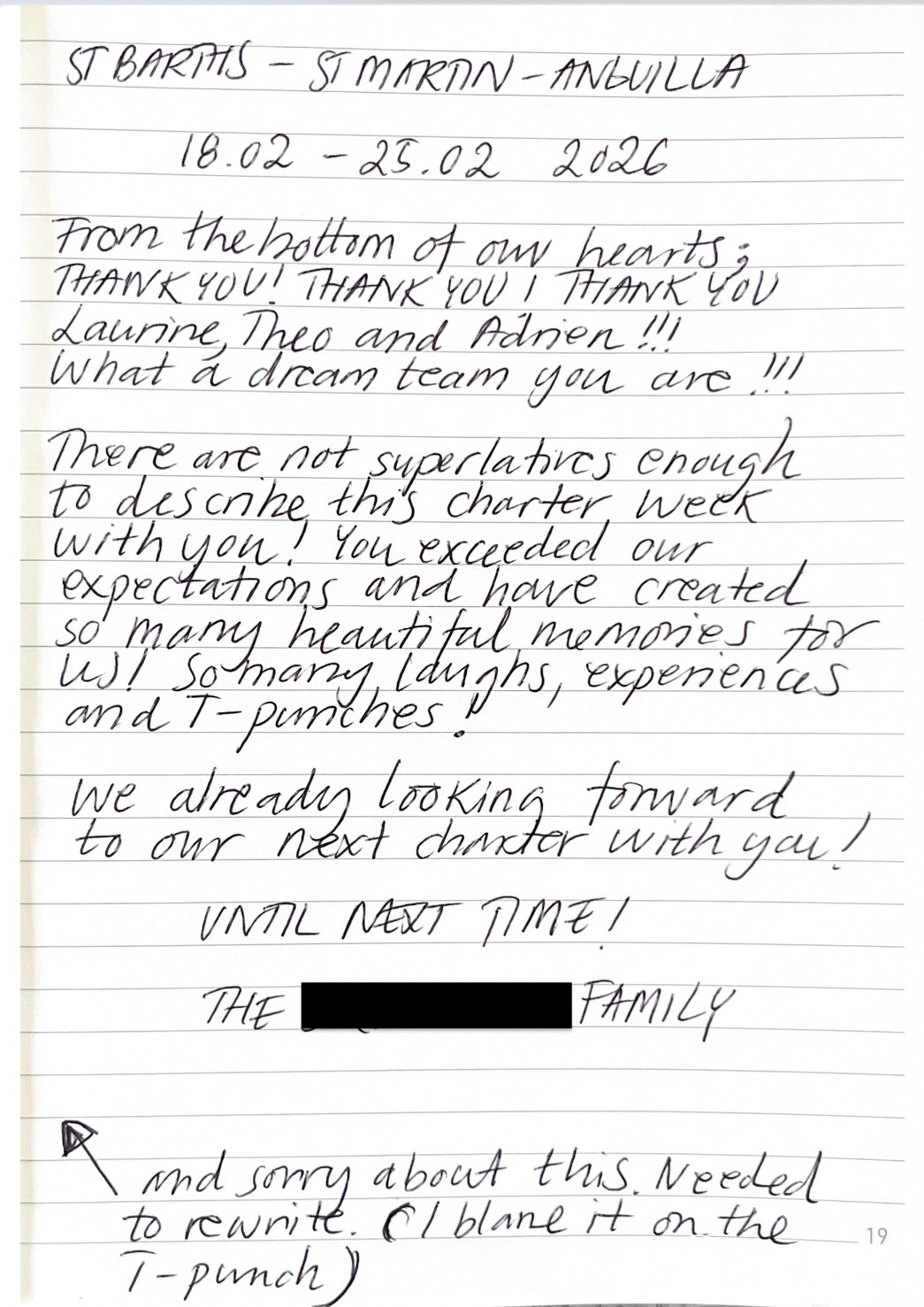 There are not superlatives enough to describe this charter week with you ! You exceeded our expectations and have created so many beautiful memories for us