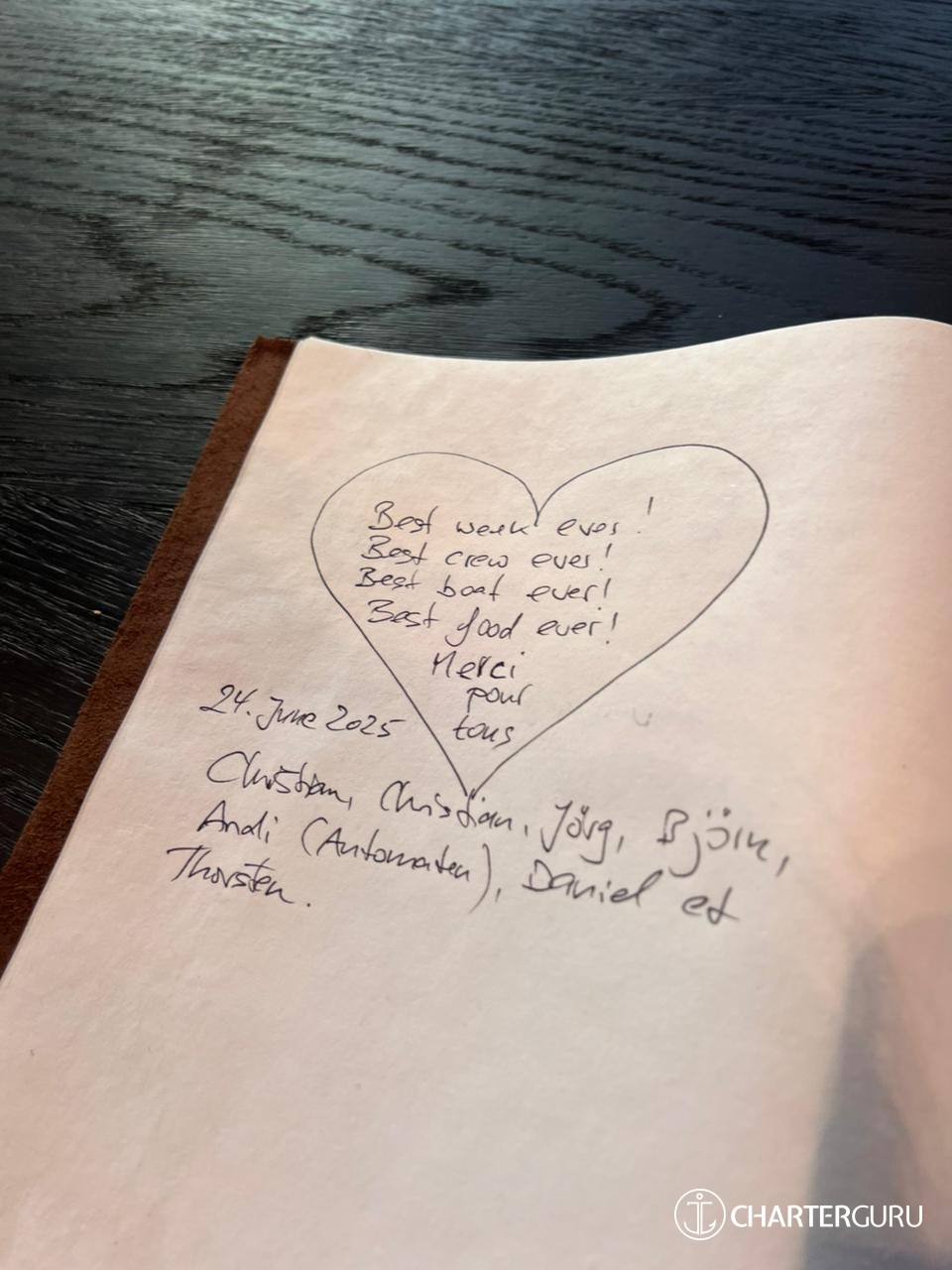 Your professionalism, kindness, and attention to every little thing turned this voyage into something truly special.