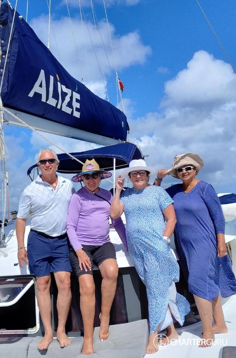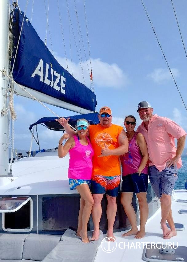 You made this trip possible. We didn't think it was going to happen. You made it happen. The ALIZE is beautiful. We had the most relaxing, fun and amazing time. The food was WOW! So Yummy! Drinks were perfect and kept coming. Just how we like. You both are fantastic hosts. Listening and watching who we are and took us to the best places in the BVI. We do not want to leave!! Thank you so much for taking great care of us . We have the best memories to take with us and great shirts!!