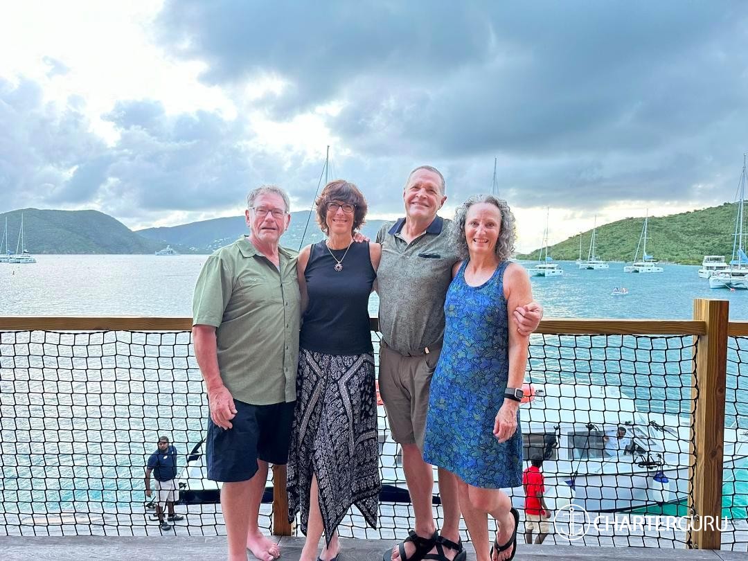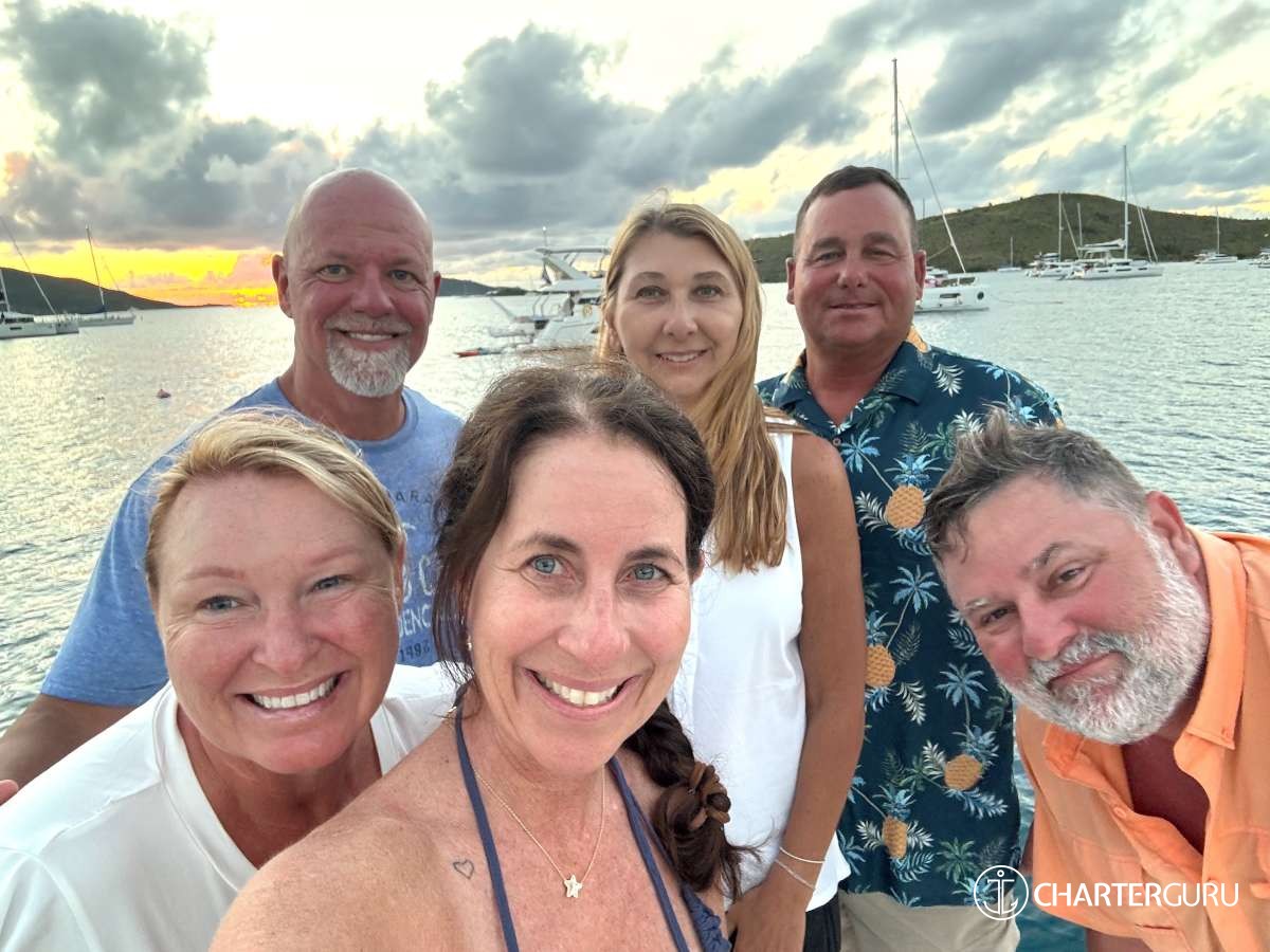 Thank you for the wonderful week in paradise! We've never been on a trip quite like it; blue skies, blue water, day after day. Sailing on and sleeping on the boat has been awesome. You two have definitely been a bonus to the trip. We thank you for being such wonderful hosts. You served awesome food and drinks everyday. You both have been so gracious, kind and generous hosts- Everyday!