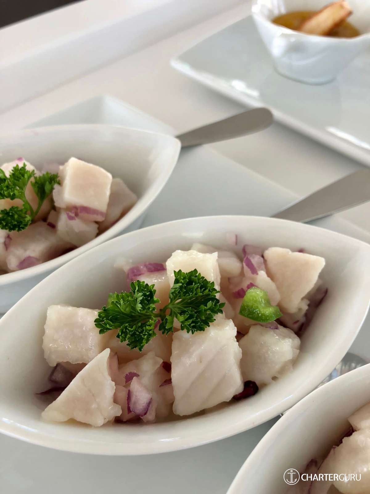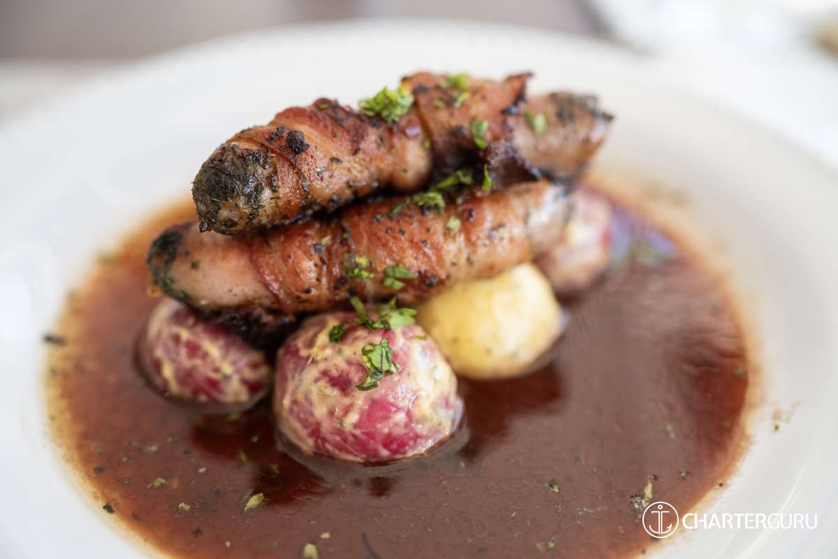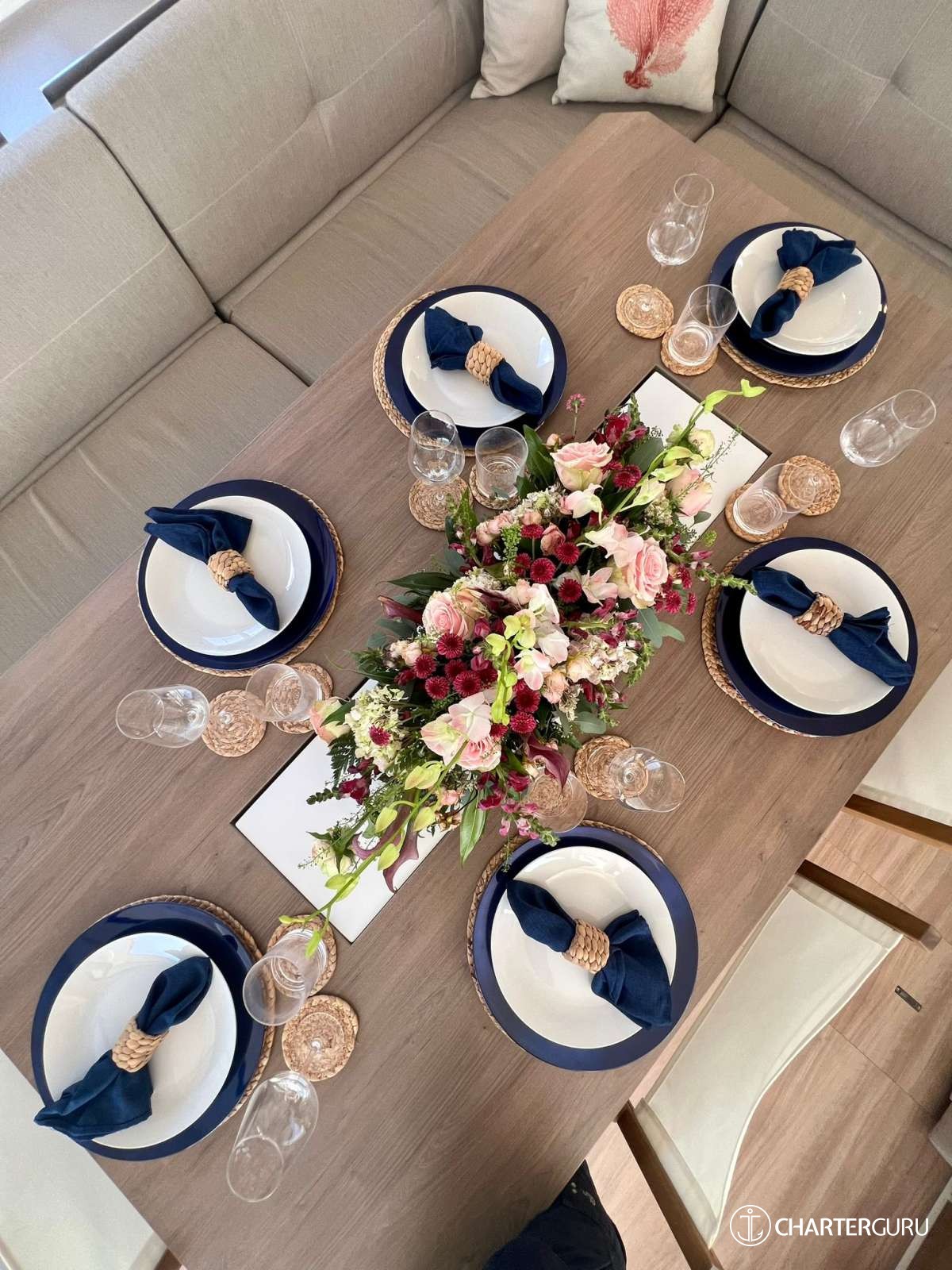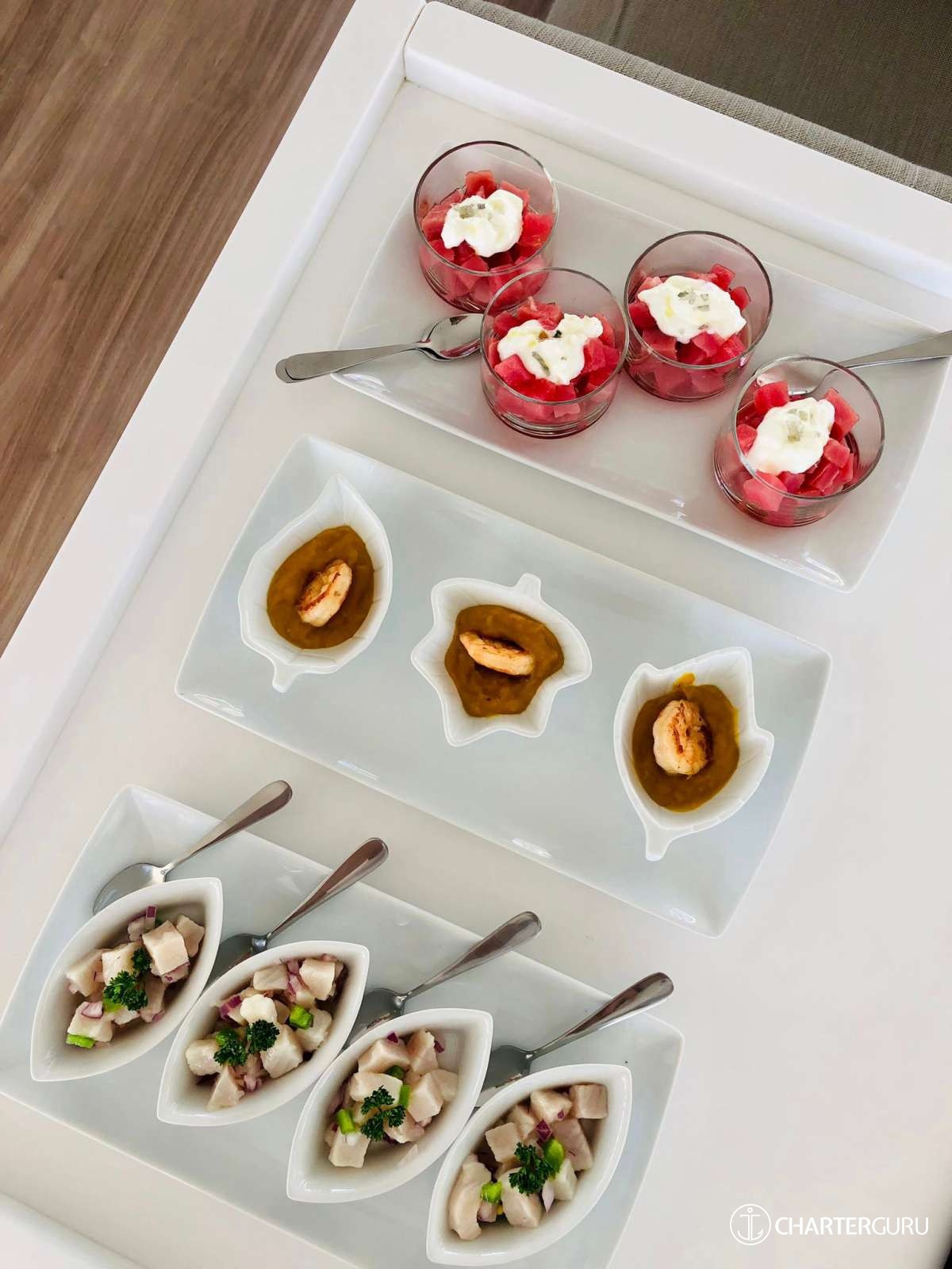 Having spent most of my life on boats, I was impressed daily with Mente’s seamanship skills; he taught me something new almost every day. One would have not known that they were new to the Charter business had we not asked. Annick is a skilled boater as well yet her forte was her cooking. We never had a bad meal and were impressed daily with not only her presentation but the amount of work and thought that went into most of the meals; impressive.
