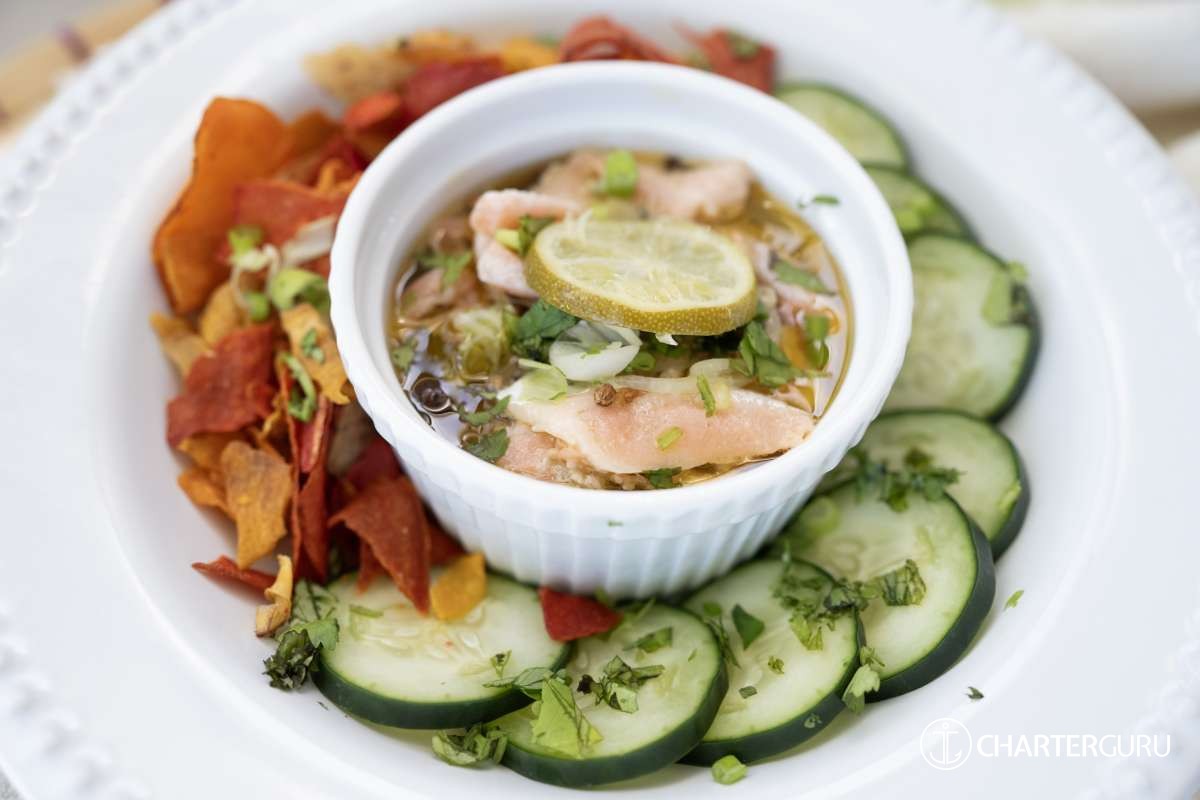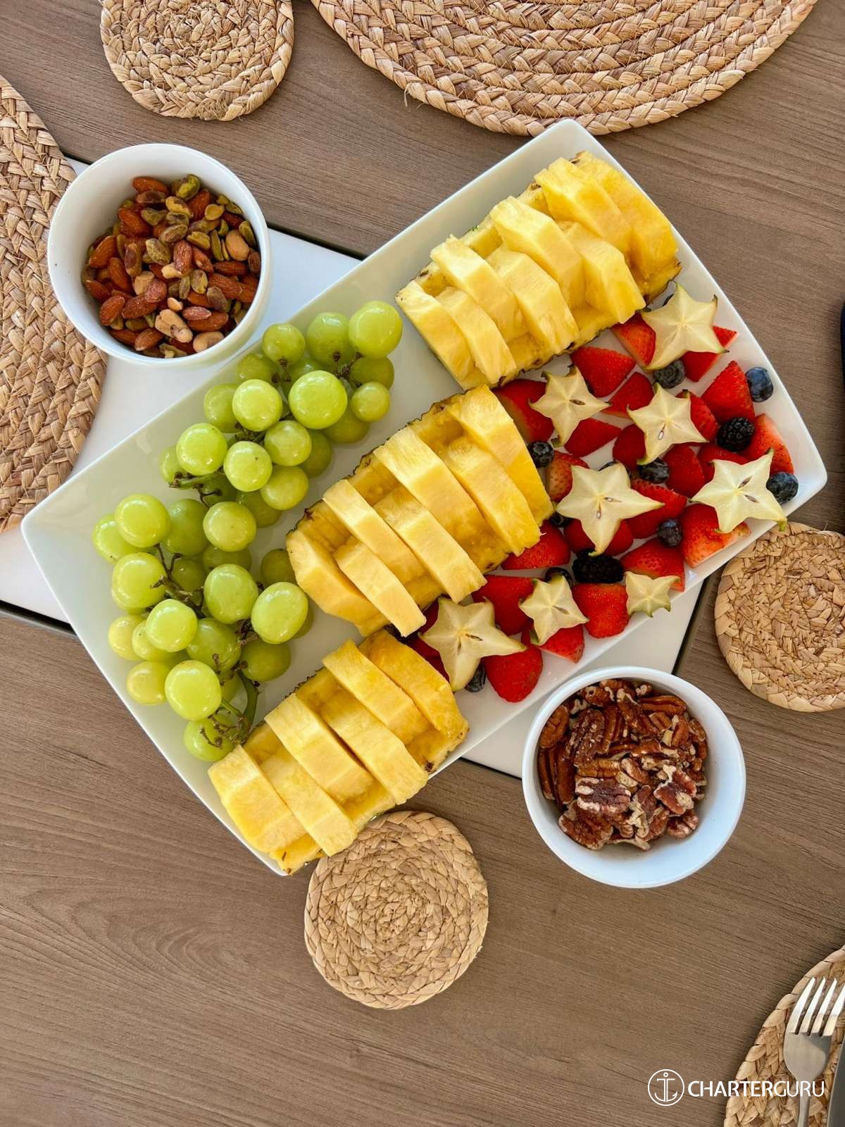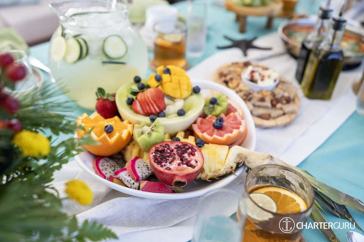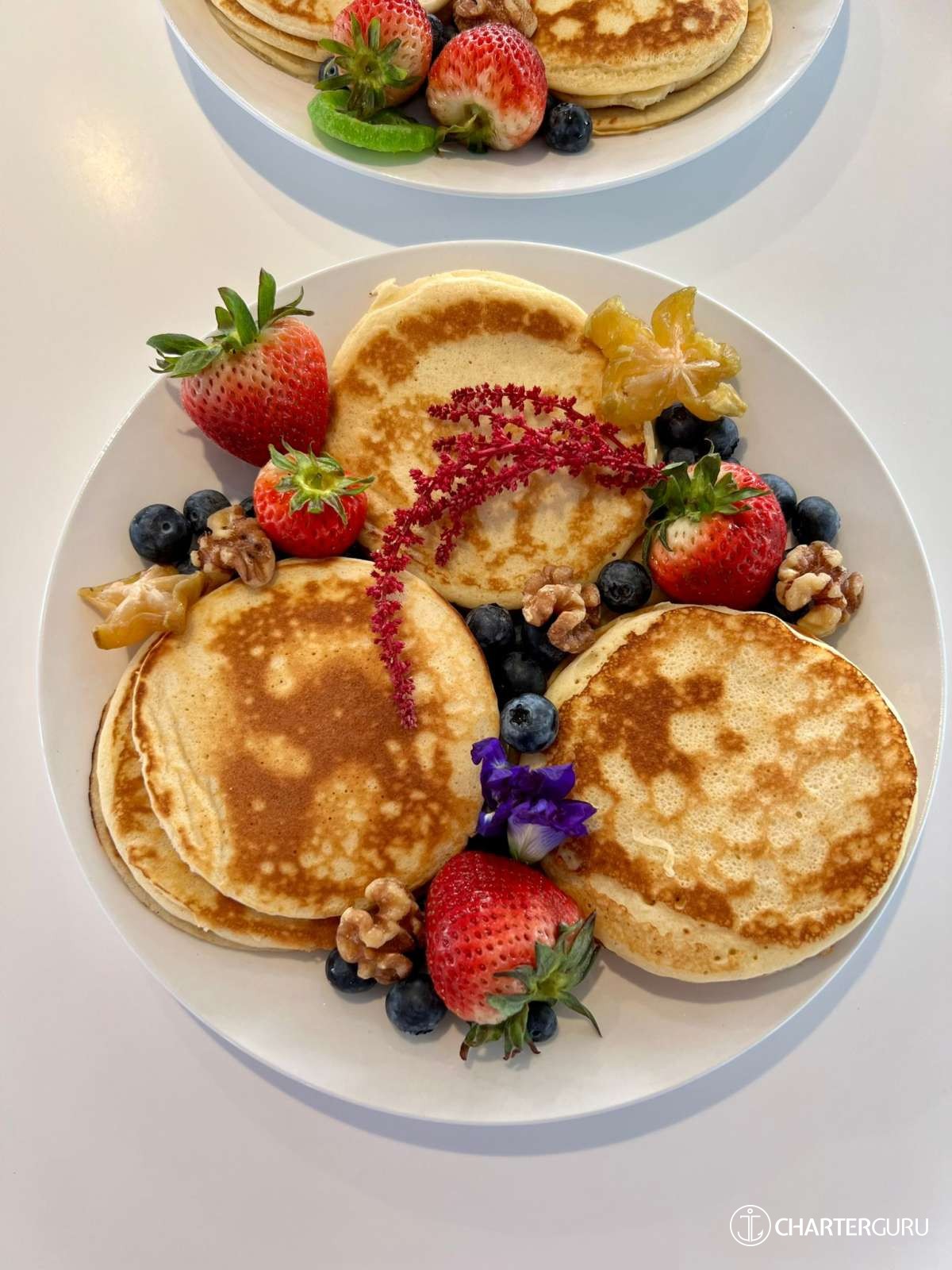 Having spent most of my life on boats, I was impressed daily with Mente’s seamanship skills; he taught me something new almost every day. One would have not known that they were new to the Charter business had we not asked. Annick is a skilled boater as well yet her forte was her cooking. We never had a bad meal and were impressed daily with not only her presentation but the amount of work and thought that went into most of the meals; impressive.