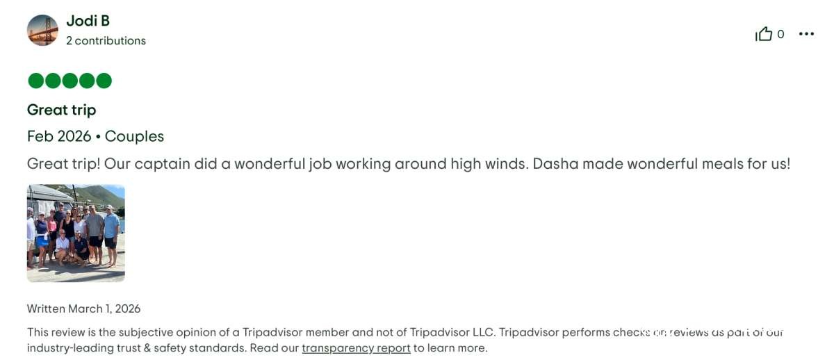 If you’re booking through this company, I would absolutely recommend requesting Captain Nicholas and Chef D specifically. They didn’t just run the trip—they made it unforgettable.