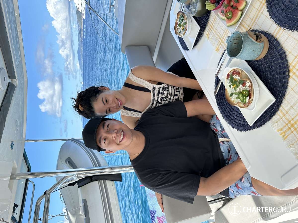 BELIEVEN is offered primarily as a sailing catamaran. The the core layout is spread out from the main saloon, which connects to the aft deck. The aft deck is where heart of the yacht is and usually it is where you, as a charter guest, spend most of your time. The tasteful cabins are located below the main saloon, connected by stairs (inquire about handicapped access). The cabins offer designer mattrace beds and feature ensuite bathrooms. Multiple portholes connect you with the outside world.