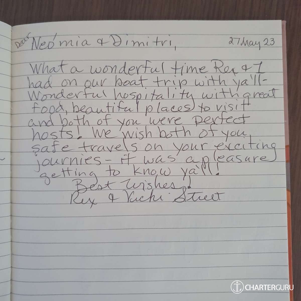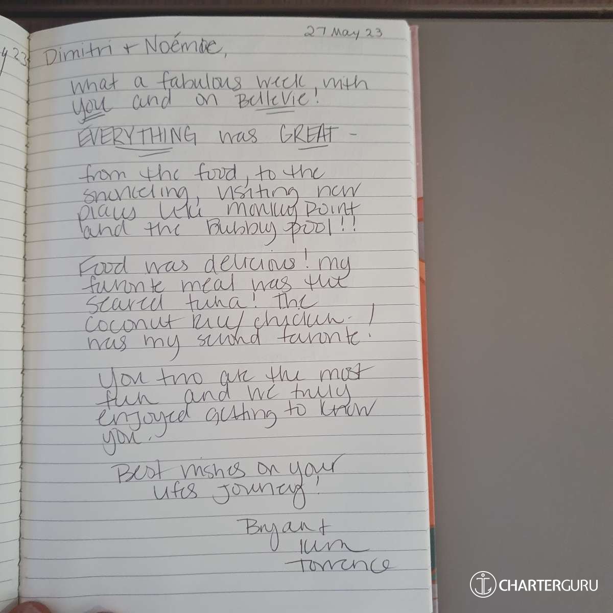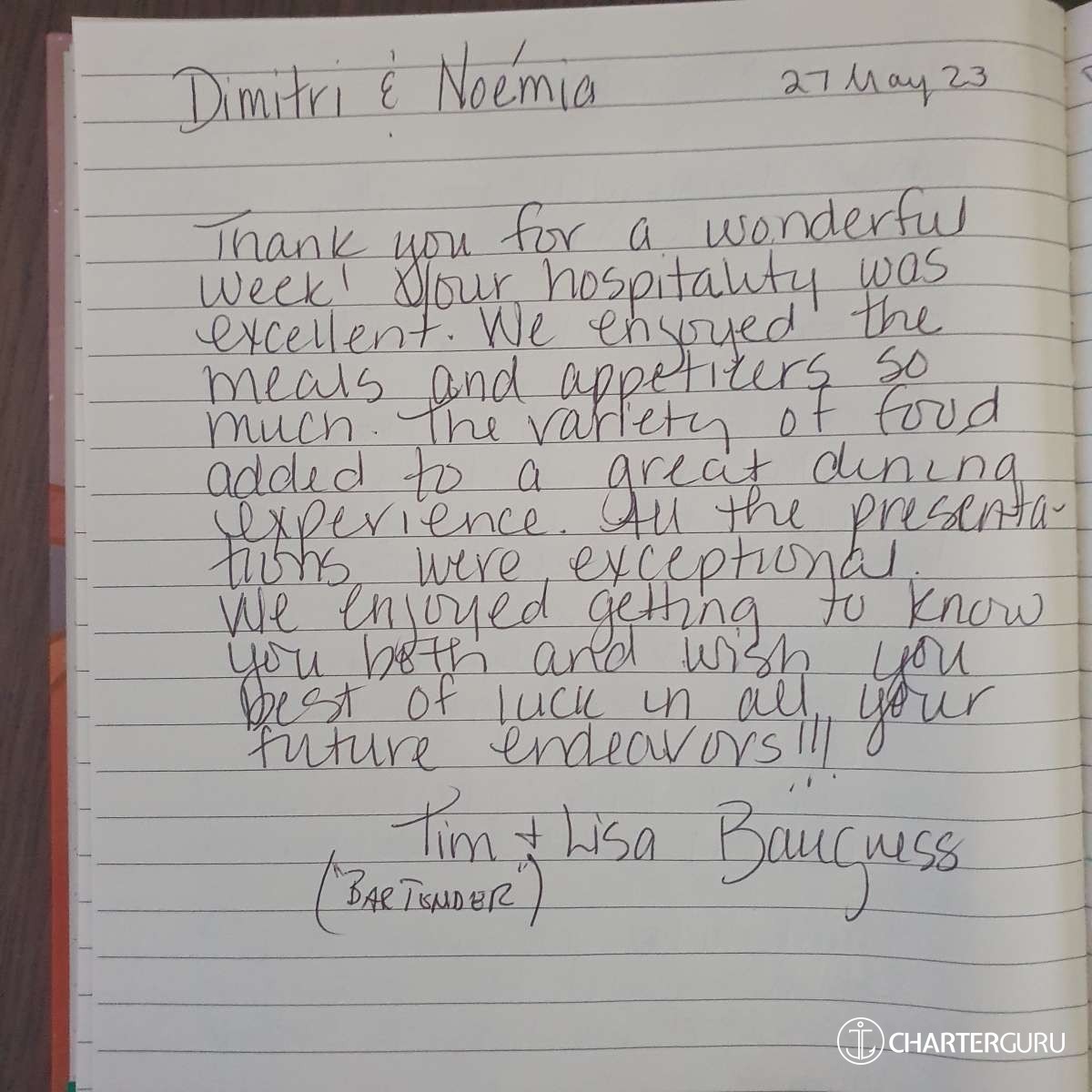 Thank you both for being so amazing. Noemie, you are an incredible chef and thank you captain Dimitri for all the adventures, we will definitely return. We had a wonderful week thanks to the two of you. Stay healthy and happy!