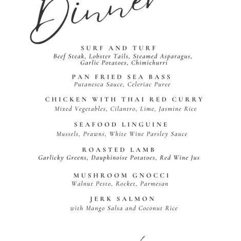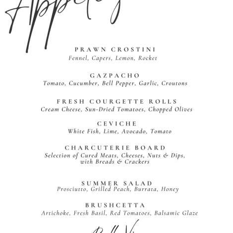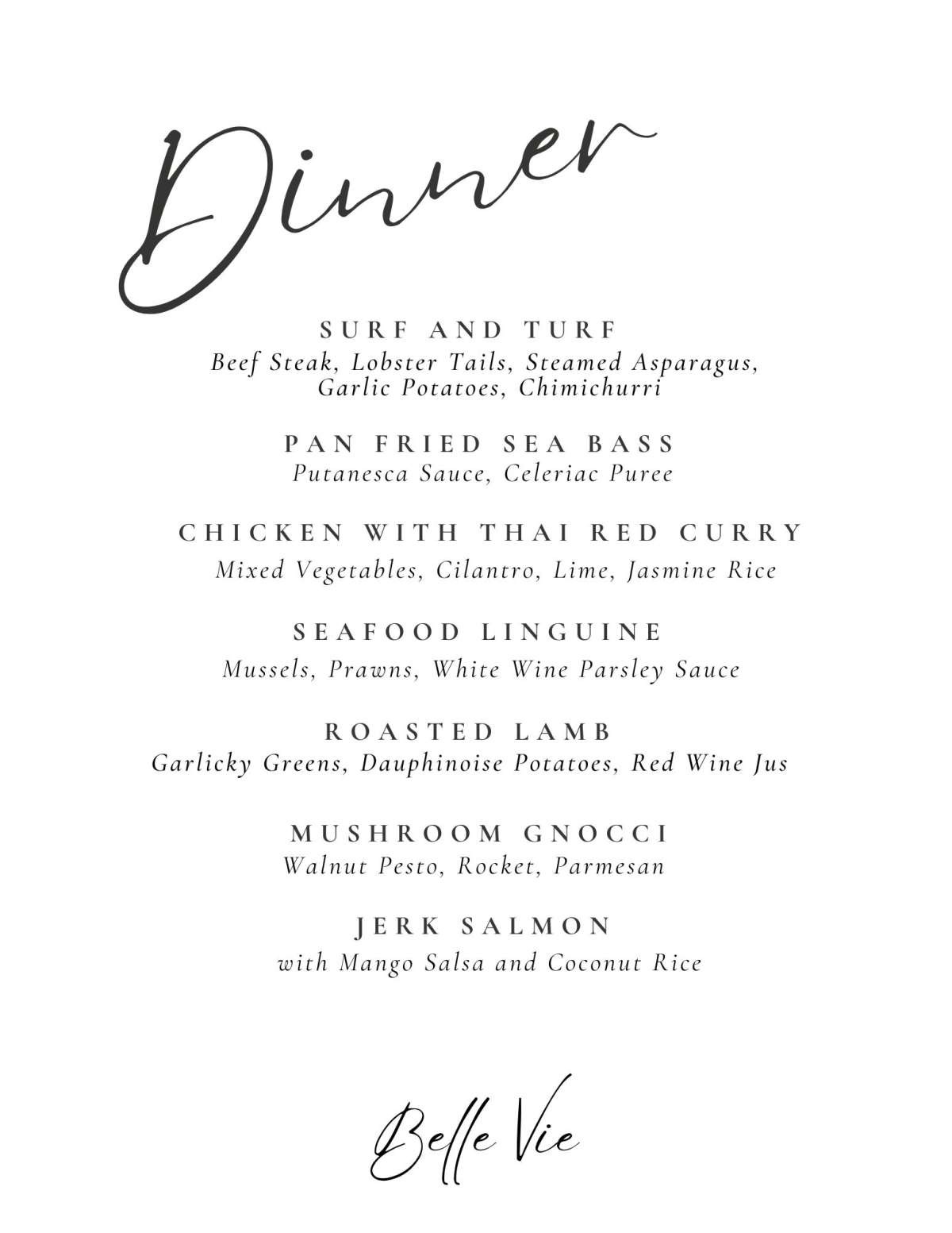 Thank you for a wonderful week! Your hospitality was excellent. We enjoyed the meals and appetizers so much. The variety of food added to a great dining experience. All the presentations were exceptional. We enjoyed getting to know you both and wish you best of luck in all your future endeavors!