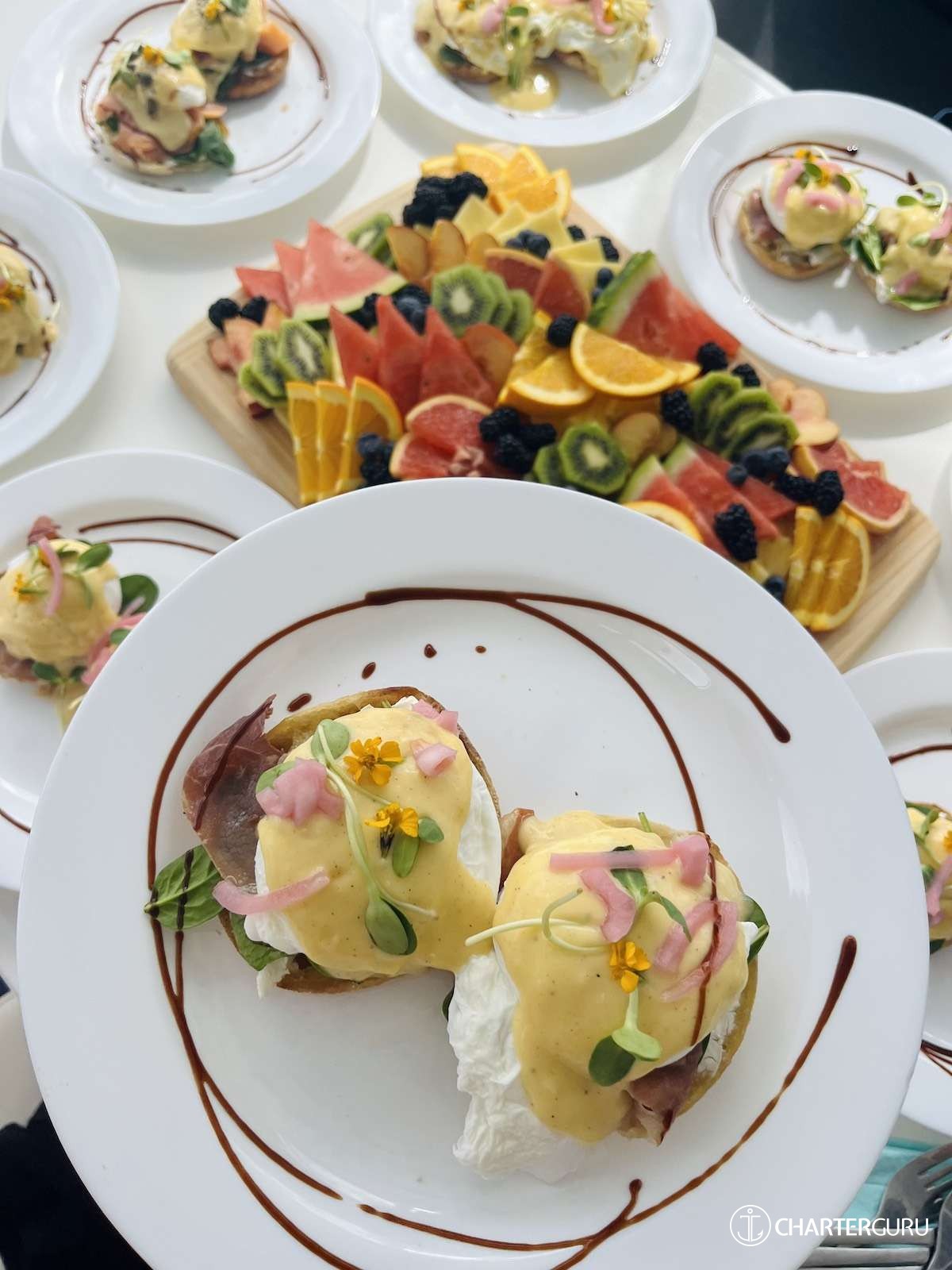 BIG NAUTI is classified primarily as a sailing catamaran. The yacht layout radiates from the main saloon, which connects to the aft deck. The aft deck features a variety of seating areas and usually it is where you, as a charter guest, spend most of your time. The immersive cabins offer designer mattrace beds and feature ensuite bathrooms. The cabins are located below the main saloon, connected by stairs (inquire about handicapped access). Multiple portholes connect you with the outside world.