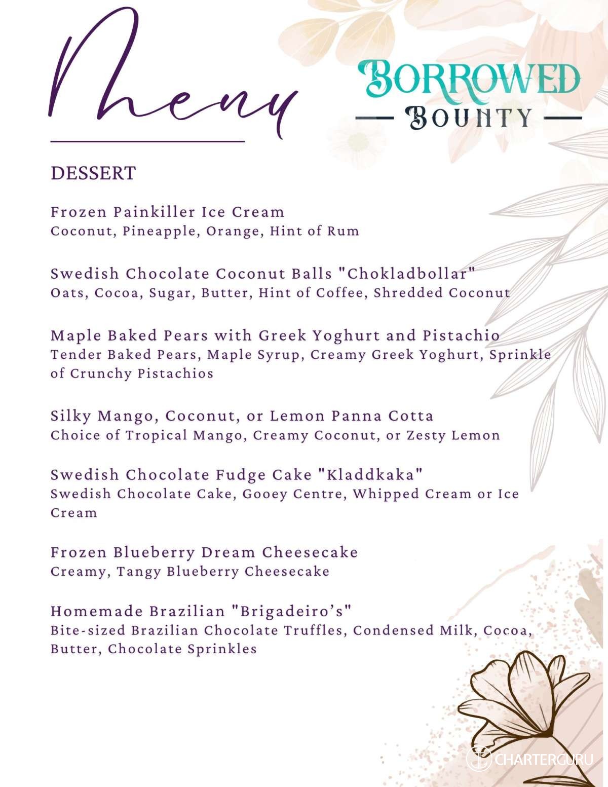 Life at sea has given Xander the chance to merge his two passions—food and adventure. Whether preparing elegant meals for charter guests or curating menus that tell a story, he approaches every dish with dedication, creativity, and a warm touch of South African hospitality.