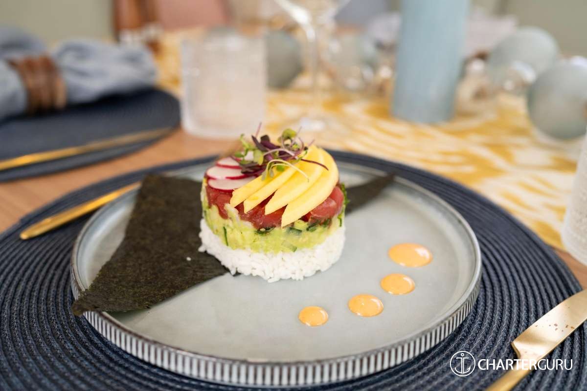 But the call of the ocean proved irresistible. Trading the security of land-based kitchens for the adventure of life at sea, Xander brought his talents aboard luxury catamarans, blending fine dining with the rhythm of the waves. His menus are inspired by global influences while honouring seasonal and local ingredients, delivering meals that are as unforgettable as the breathtaking backdrops they are served against.
