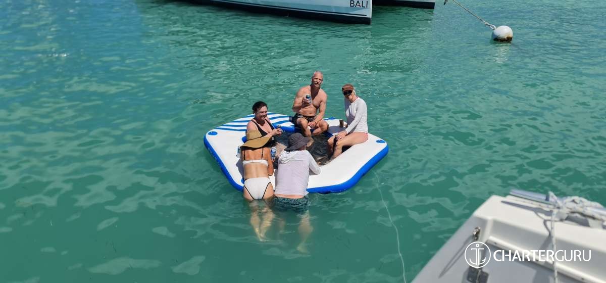 C SISTERS, a brand-new Bali sailing catamaran, showcases the remarkable design expertise of Bali. From the moment you step into the exquisite cockpit with wood floors, a dining table, and a cozy lounge bench, you know you're in for a unique charter experience. Ascending to the flybridge treats you to awe-inspiring views of the turquoise lake and the sails from every angle, making it an ideal spot for sunset cocktails, light fare, and leisurely reading. The spacious and bright main salon is surrounded by abundant windows, while all four guest quarters offer roominess and ample natural light through numerous windows. Each stateroom features a queen-sized bed with a private bathroom and shower. The high-end finishing work throughout the vessel complements its exceptional quality. C SISTERS provides a spectacular experience, with a variety of distinct settings that cater to everyone's preferences.
