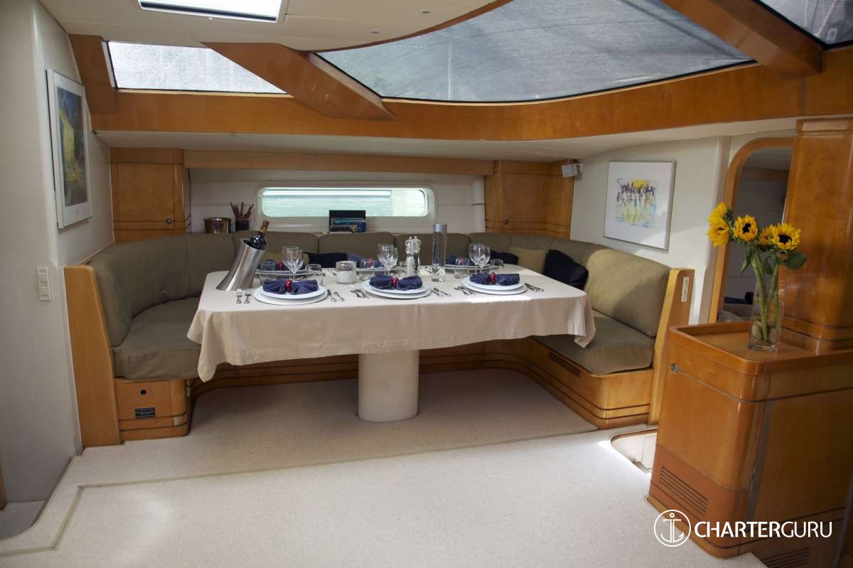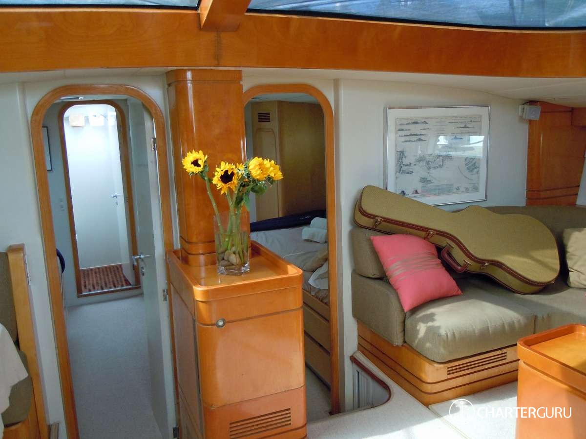 CAP II can accommodate 6 guests in three spacious double cabins (two forward and one midship) each with ensuite heads and cupboard space. The two forward cabins can be converted into a large primary suite due removable dividing wall that can form one large cabin.Air conditioning throughout.