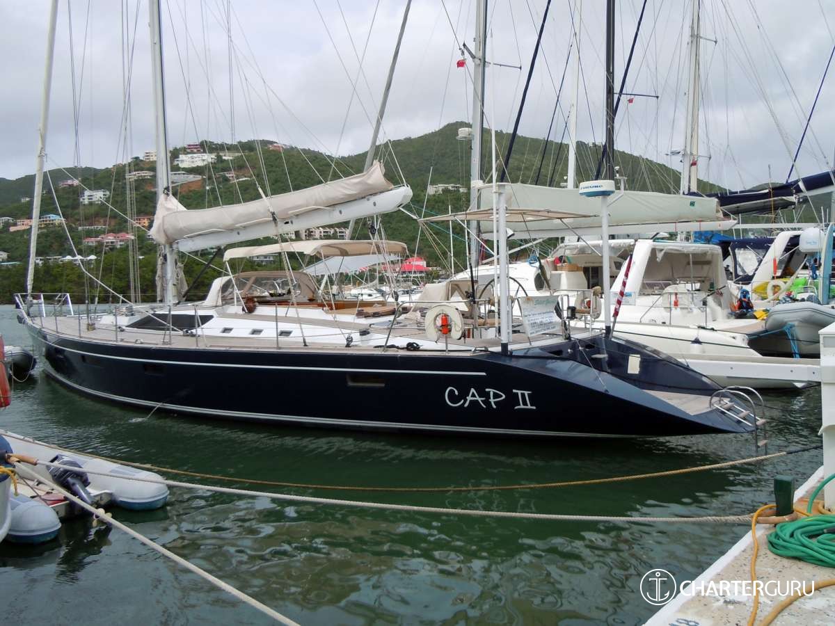 Offered by DMA Yachting, the astonishing charter yacht CAP II is a 76 ft sailboat. The most attractive features of CAP II are her absolute comfort and fantastic layout. CAP II spends the winter season in US Virgin Islands. She was completed by the well-known ship builder CNB Bordeaux in 1992. An elegant refit was completed in 2023/4 refit. Main engine rebuild 2014; All of the following new in 2014/2015: standing rigging, B&G wind instruments, radar & chart-plotter, mainsail track, sail cover, Lewmar Ocean cabin hatches, saloon & cabin air condition units; New generator in 2013; New skyscreens in forward cabins and heads 2016; New fridge/freezer compressor 2017.. The ingenious yacht layout features 3 generous cabins and comfortably accommodates a group of 6 guests.