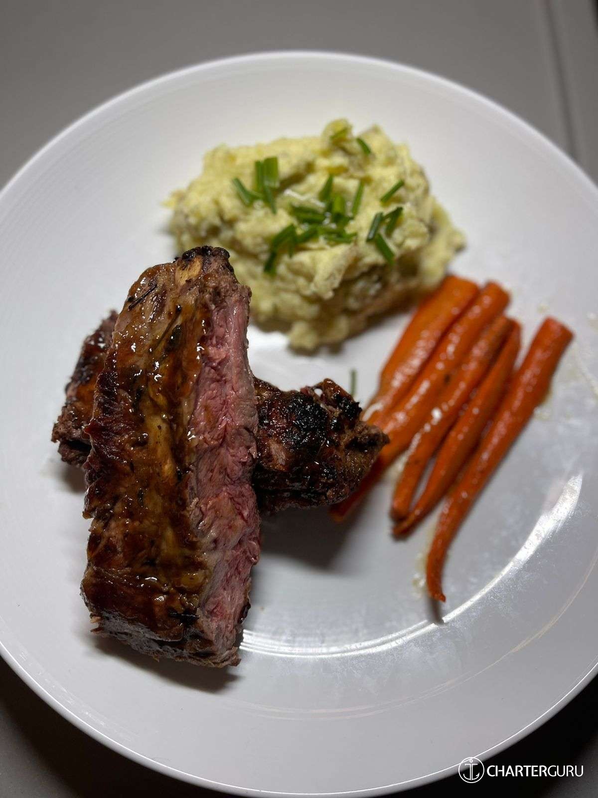 Includes 7 breakfasts, 5 lunches & 6 dinners, all other meals to be eaten ashore at client's expense.