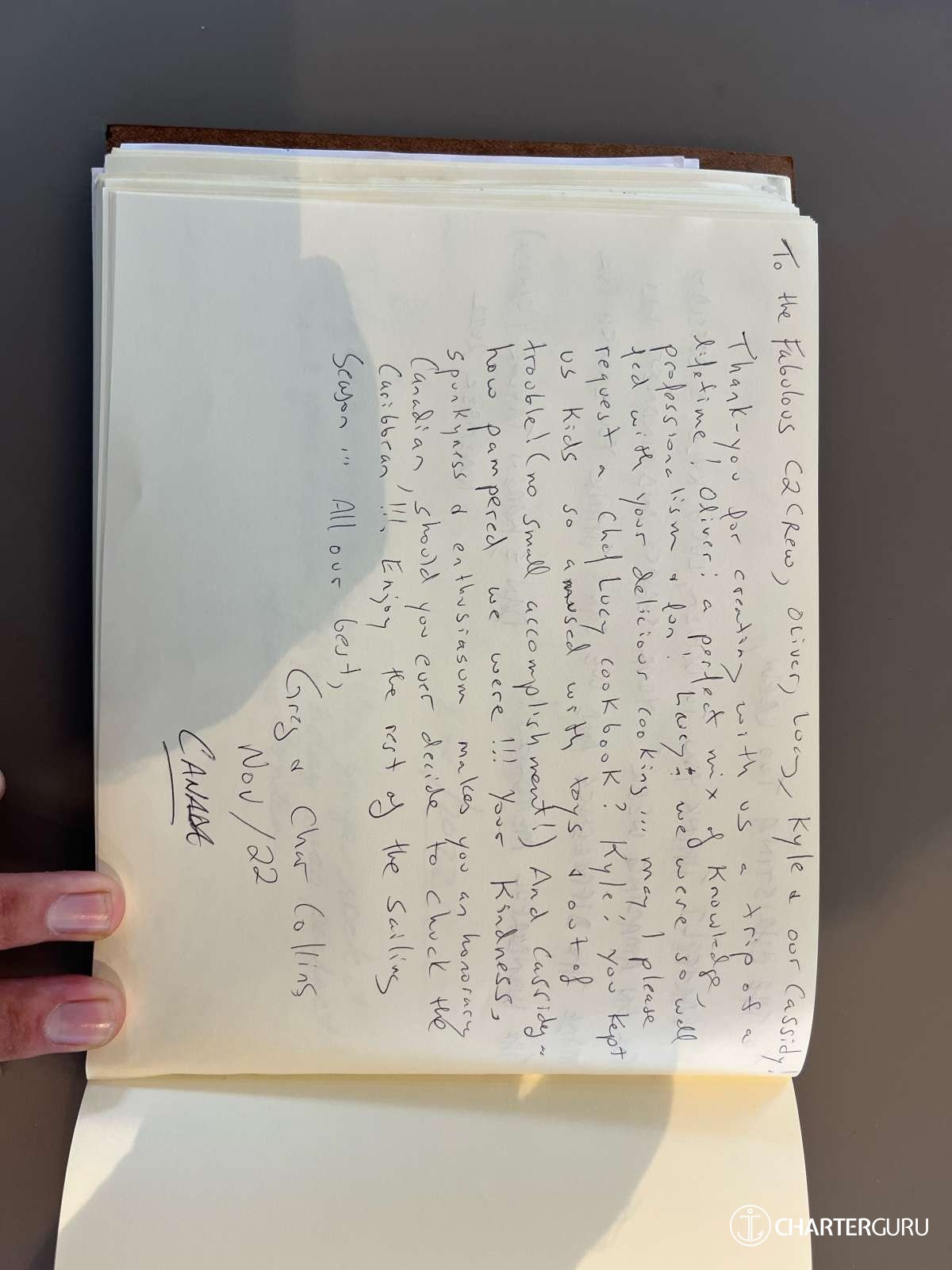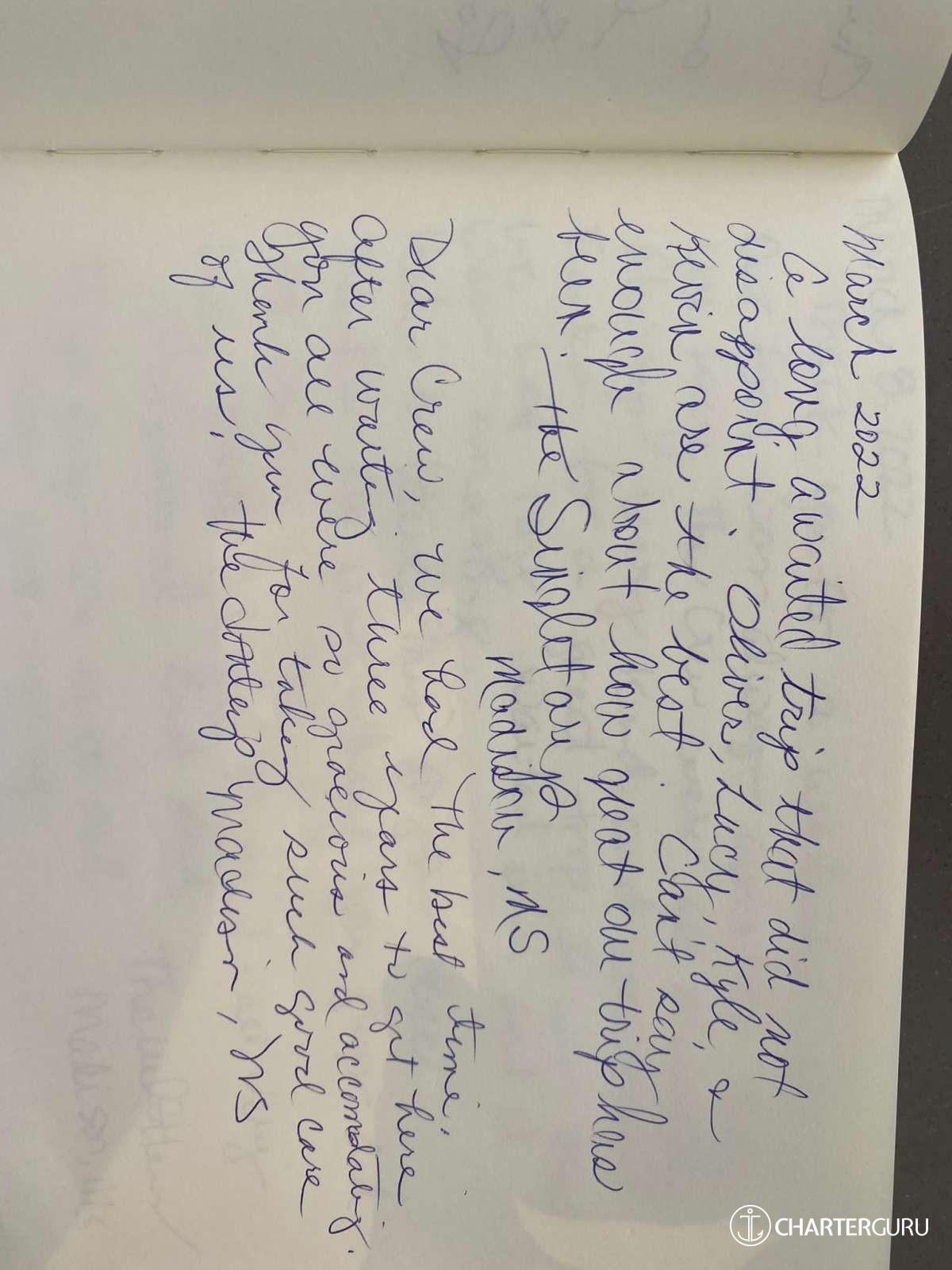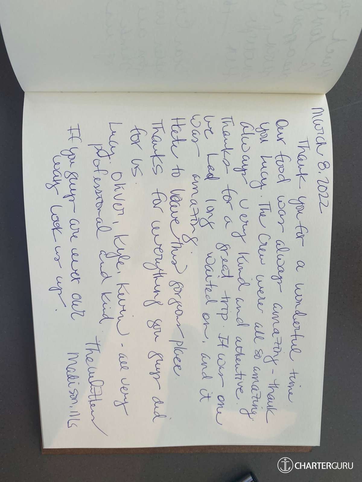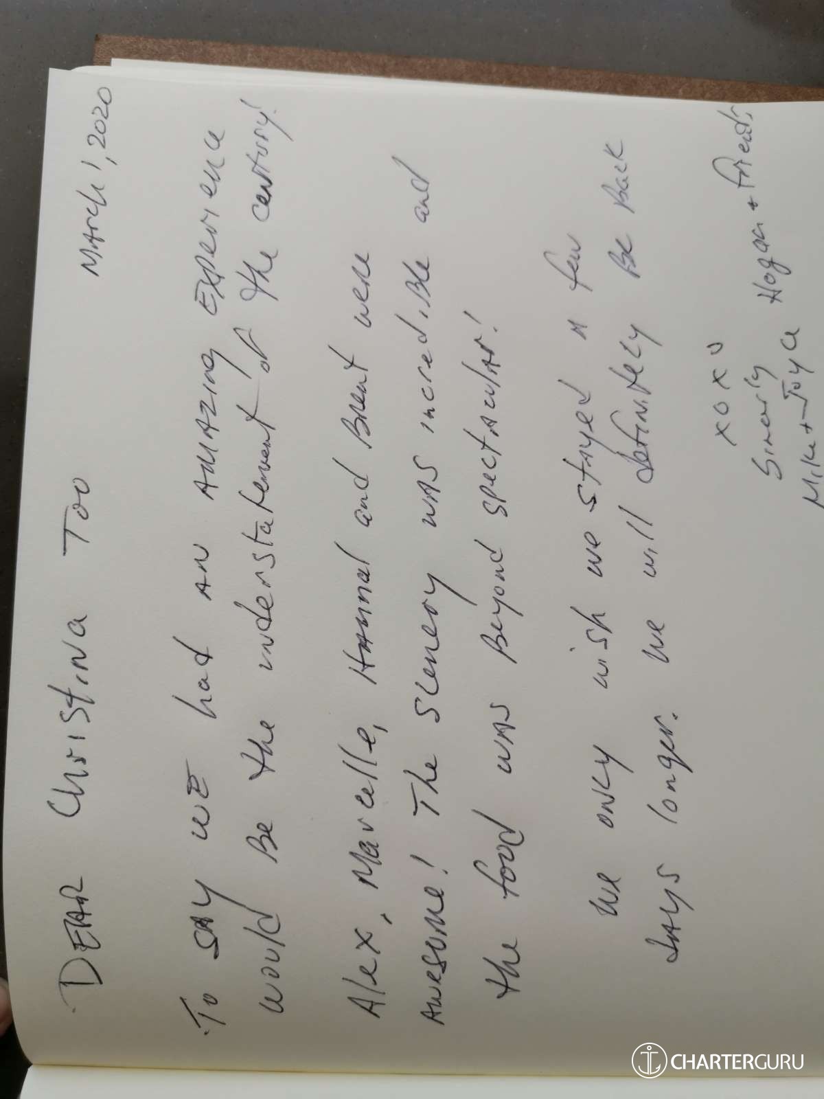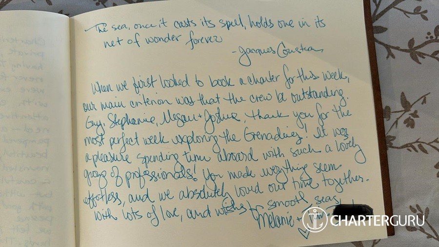 We could not have wishing you for better crew and thoughly enjoyed our time with you.