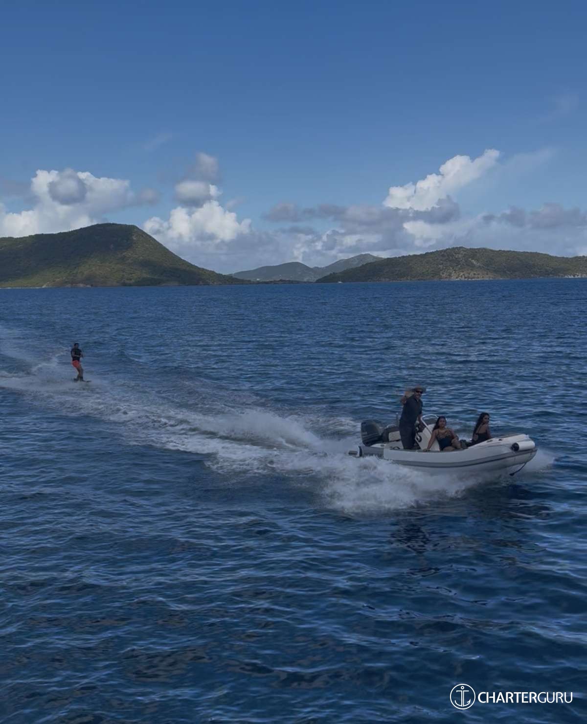 DANTE is a 2023 Bali 5.4 sailing catamaran built for next-level Virgin Islands charters, with Bali’s signature indoor-outdoor flow and big, social living spaces. Standout feature: the Bali cockpit enclosure, transforming the aft lounge from open-air breeze to weather-protected comfort at the touch of a button. Sleeps 8 in 4 cabins—3 Queen cabins plus 1 Twin—each with a private ensuite. Spread out across multiple hangout zones: a spacious flybridge, sun-drenched foredeck, generous sunpads, and wide, easy walkways for effortless movement onboard. Inside, the bright U-shaped galley, chart table with sea views, and flexible salon-dining space keep the vibe polished yet relaxed. Modern, breezy, and made for island-hopping—DANTE delivers paradise with power.