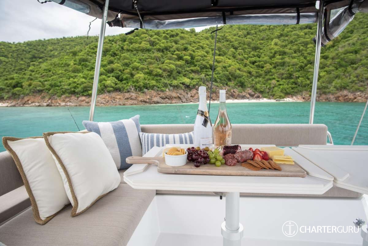 Deborah Anne will accommodate 6 charter guests in 2 spacious master cabins and 1 queen cabin, each with their own separate shower and head. She is a 2023 sailing catamaran offering a hydraulic platform, upgraded engines, 2 head sails, solar panels, air conditioning, water maker, ice maker, full sized refrigerator, a fully customizable menu, Caribbean made ecofriendly and reef safe toiletries, a bar stocked to guest preference, coffee/espresso machine, rendezvous scuba diving, snorkeling gear, underwater scooters, subwing, wakeboard, stand up paddle board, towable water tube, 10 ft. floating dock, pool noodles, fishing gear, board and card games, television in the salon, Fusion 3 Bluetooth enabled sound system and Deborah Anne giveaways.