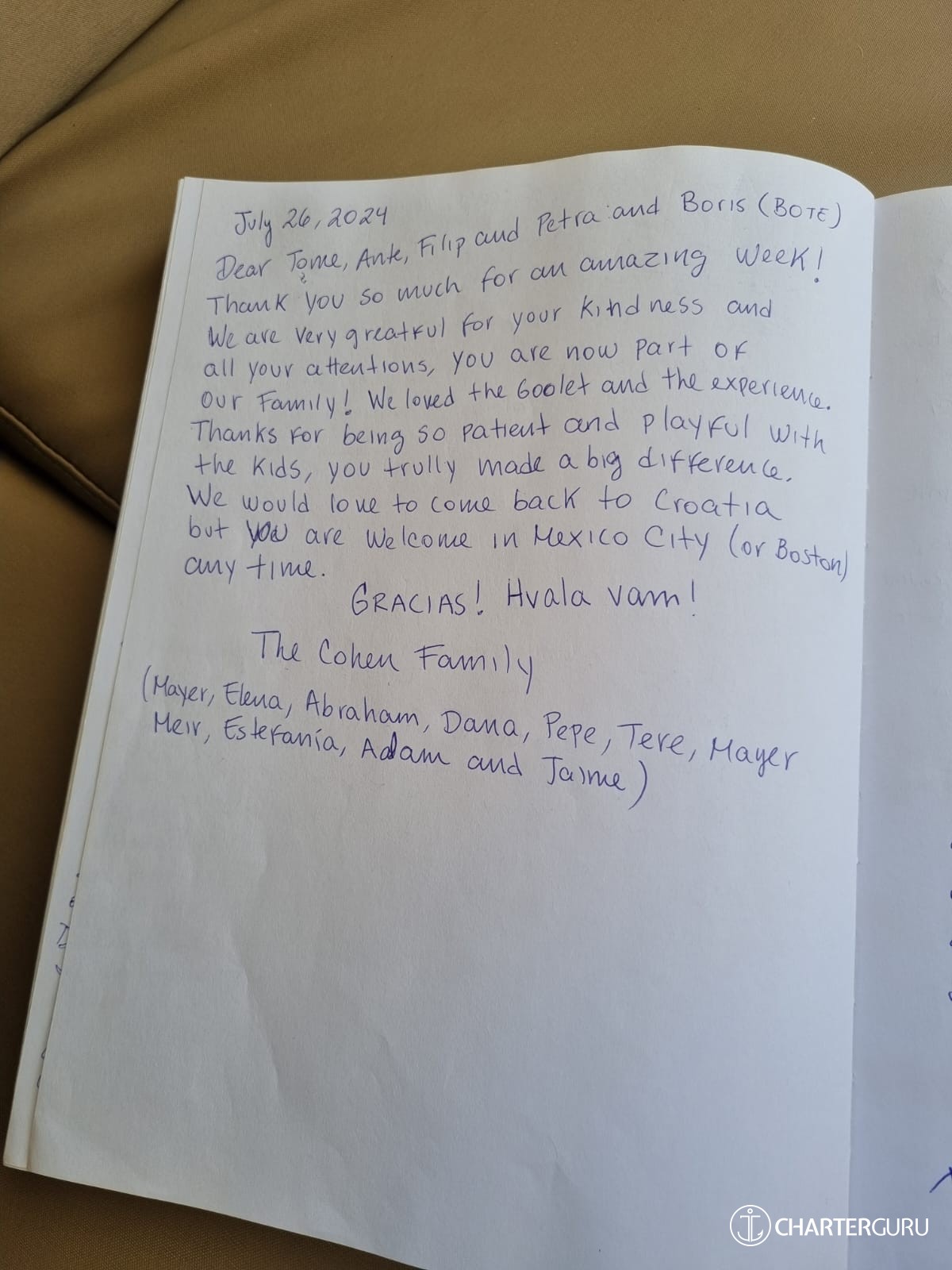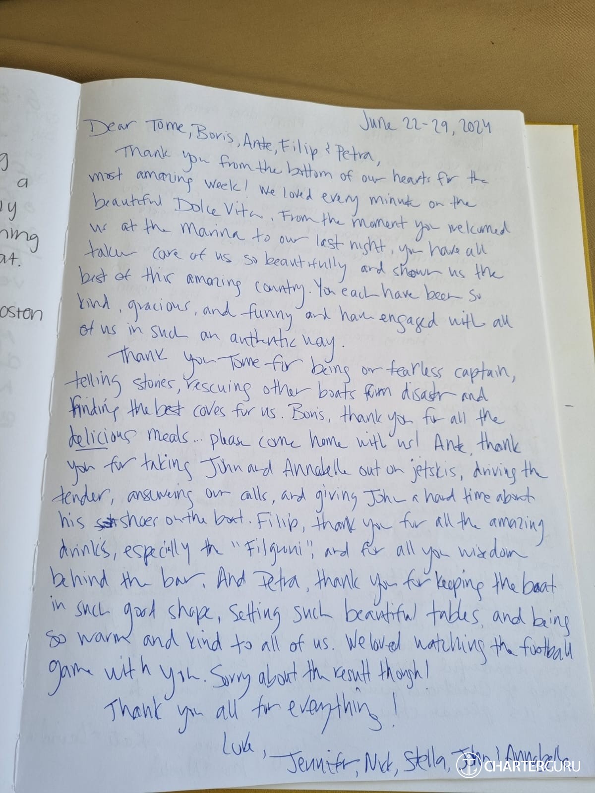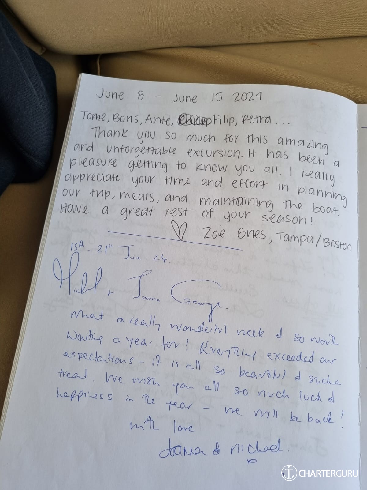 There are moments in time to have special days in paradise and this trip was one of them. From Tomis stead hand in charge, Ante's quiet talking but solid demeanour and Boris making us incredible food. Mostly, I'd like to that Nikola and Irene, who feel like one of the family!