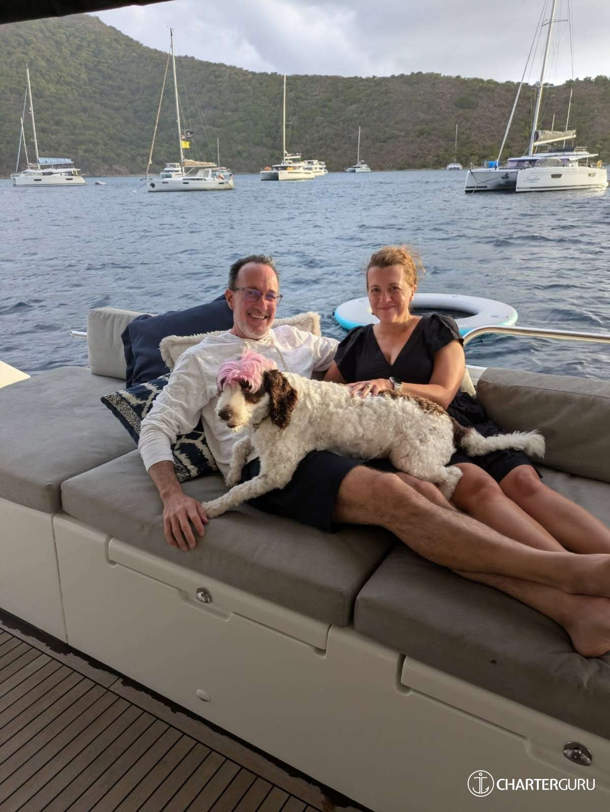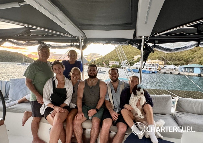 Where can I begin. My wife wanted to do something special for her birthday. We had all kinds of ideas and plans, however she wanted to do something extra special. She happened upon private charter boats and stumbled into Dreamcatcher. From the very beginning, Stef and Jake were prompt in their email replies and responses answering all the important questions as well as the ignorant ones since we had never done anything like this before. Jake and Stef took it in stride and were very kind and polite through the whole process down to the best ways to travel and get there, offering advice along the way. The conference call the week before was a big help as it answered a lot of questions that came up at the last minute such as things to pack, what to prepare for, down to last minute dining and drink choices. The day we arrived in St. Thomas we caught a cab from the airport to the marina where Captain Jake stood waiting for us with a cart to help us move all our gear from the cab to the boat. When we arrived at the boat, Stef was ready and willing to do whatever she needed to and welcome us aboard. “We are a shoe free ship so drop them in this basket and come on in!” We were shown where our sleeping quarters would be for the week. We already had a great idea of what we were walking into because the preference sheet as well as sleeping arrangements were well laid out for us prior to our arrival so we knew EXACTLY what to expect. I will say, it went above and beyond our expectations. Everything was tidy, clean, and neat. A welcome basket greeted us as soon as we entered our rooms that included a journal, welcome note from the crew, as well as sunscreen and towels. Since it was my wife’s birthday, they went above and beyond and decorated the door to our room with Happy Birthday banners. Before we could turn around, as we were all wary and famished from our travels, we were greeted with an appetizer and shown where the beverages were so we could immediately begin our vacation. We set sail and went to our first bay for the night and traveled to many on our seven-day tour. Captain Jake is excellent and knows the waters around us, as well as how to provide a smooth sail as to not disturb us or create any illness on our moves from port to port. We motored part of the journey and sailed the rest. He was willing and able to let us be involved in the process and stood by as we swapped sea stories of our own personal adventures through our lives. The food on board was top notch. Every meal was shared with laughter and joy as we indulged in what Stef prepared for us. Breakfast was fantastic. Lunch, even better. There were several days that she spent all day prepping for dinner. You could really tell she put her heart and soul into it as dinner was normally quiet as we all savored in the fare that she set out in front of us. Although we filled out preference sheets, we never really designated meals as we are uncomplicated and easy going. There were 5 of us in our party total and some had special requests, but Stef nailed every meal and fit everyone’s specific requests from beginning to end. You want chicken nuggets? No problem. Pizza? Why not. Fish tacos? Our pleasure. Fresh lobster on the grill that we caught while diving? Absolutely! We were never left leaving the table hungry and as the day melted on, there were always snacks available and of course, cold beverages of whatever we wanted. Before dinner every evening we had a light snack as well as hand crafted cocktails to boot to wash down our exciting days as we traded stories of our current and past adventures. My personal favorite of every day was saying goodbye to the day and blowing the conch shell as the sun set on the horizon. I am a little bit more of a night owl, so Jake and I got to sit up late many nights and chat. The conversation was warm, friendly, and welcoming as we shared about ourselves and learned about each other. There was much laughter to be had. We got to see so much on our journey that it is hard to put it all into words. Beautiful bays, amazing wildlife, shipwrecks, private beaches and so much more. What do you want to do today? Lay on the net and take a nap? Hang some hammocks and swing in the breeze? Float around on some rafts or swim? Give paddle boarding a try? Go to a private beach and sunbathe? Get scuba certified and go for a dive? How about a snorkel? Grab some lunch from a floating taco barge or stop in town for some shopping? Literally, anything that we wanted, they accommodated without question. I wanted to also point out that I personally, was a little reluctant about vacationing with two dogs on board a 47’ catamaran, but Daisy and Parker are so well behaved, they left an impression on our hearts. The day of my wife’s birthday, we were able to use the boat as our home and decorate it for her to feel special. That evening, Stef and Jake secured a special cake made just for my wife and we were all able to enjoy it. The cake was so big, that we enjoyed the other half the next day! Stef split it in half and flopped it down on the table for us to all to delve into and enjoy. Towards the end, we were all presented with a video of our vacation that highlighted our top moments and passed to us to keep this memory forever. I could drone on and on how amazing this whole experience was, but I will leave you with these final thoughts. This experience has ruined all my other resort travels in the future as this was so perfect, nothing would compare to having this experience again. We went on a vacation for that purpose. To disconnect, unwind, and relax. We came as guests, but we left with friends. Jake and Stef will now be ingrained in our lives forever and there is absolutely no doubt in my mind, we will be back to see them again and again, and again. This vacation is everything you make it. The more specific you are with them about your wants, needs, and desires, the more perfect they will make it for you.