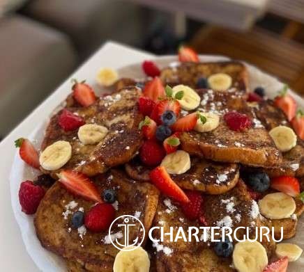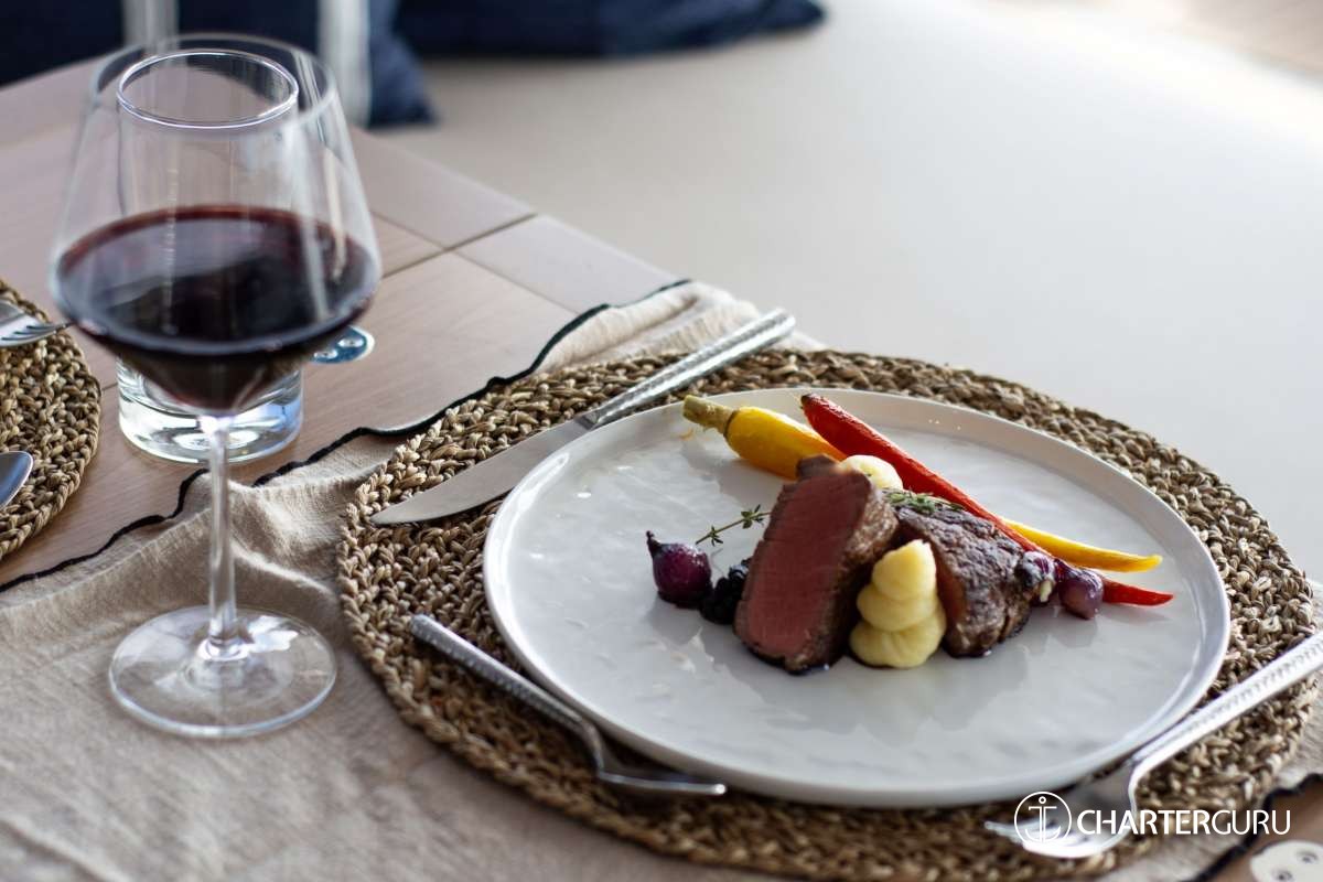 LOCAL FARE: Includes 7 breakfasts, 5 lunches & 5 dinners. Requires 2 lunches and 2 dinners ashore at the clients' expense. For local fare, deduct $150 per person off the charter rate.