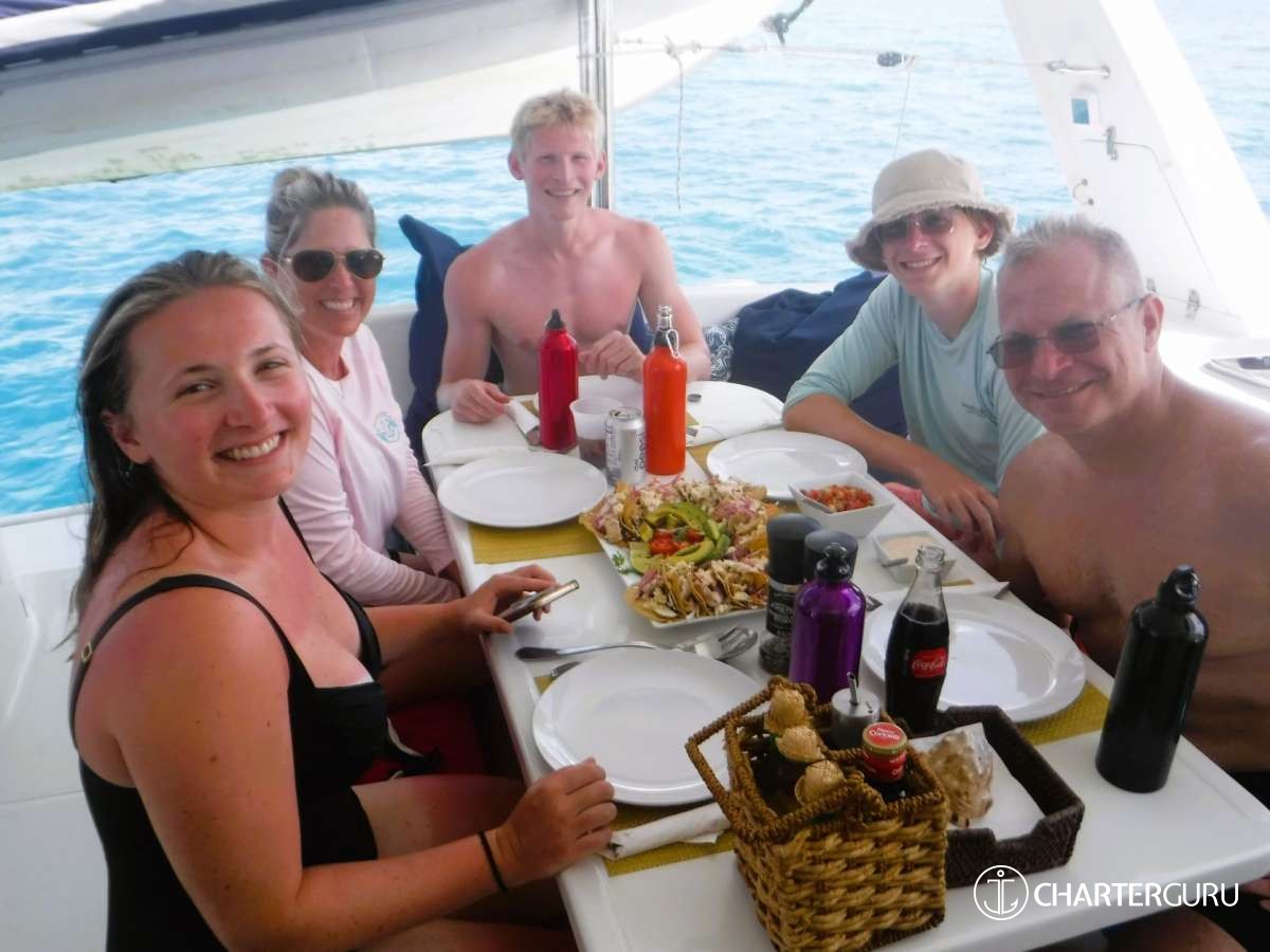 The food was wonderful! Iza is very talented. She was organized and had fresh ingredients and a great blend and variety. We had various fish dishes, pork, steak and chicken! She even prepared to perfection some fish we caught. She was easy going and went with the flow. A few meals we elected to eat on the Island we were visiting. Geoff and Iza always wanted us to do what worked best for us! One of our kids wouldn't eat green food (vegetables); Iza always had something extra for him when we had our salad!
