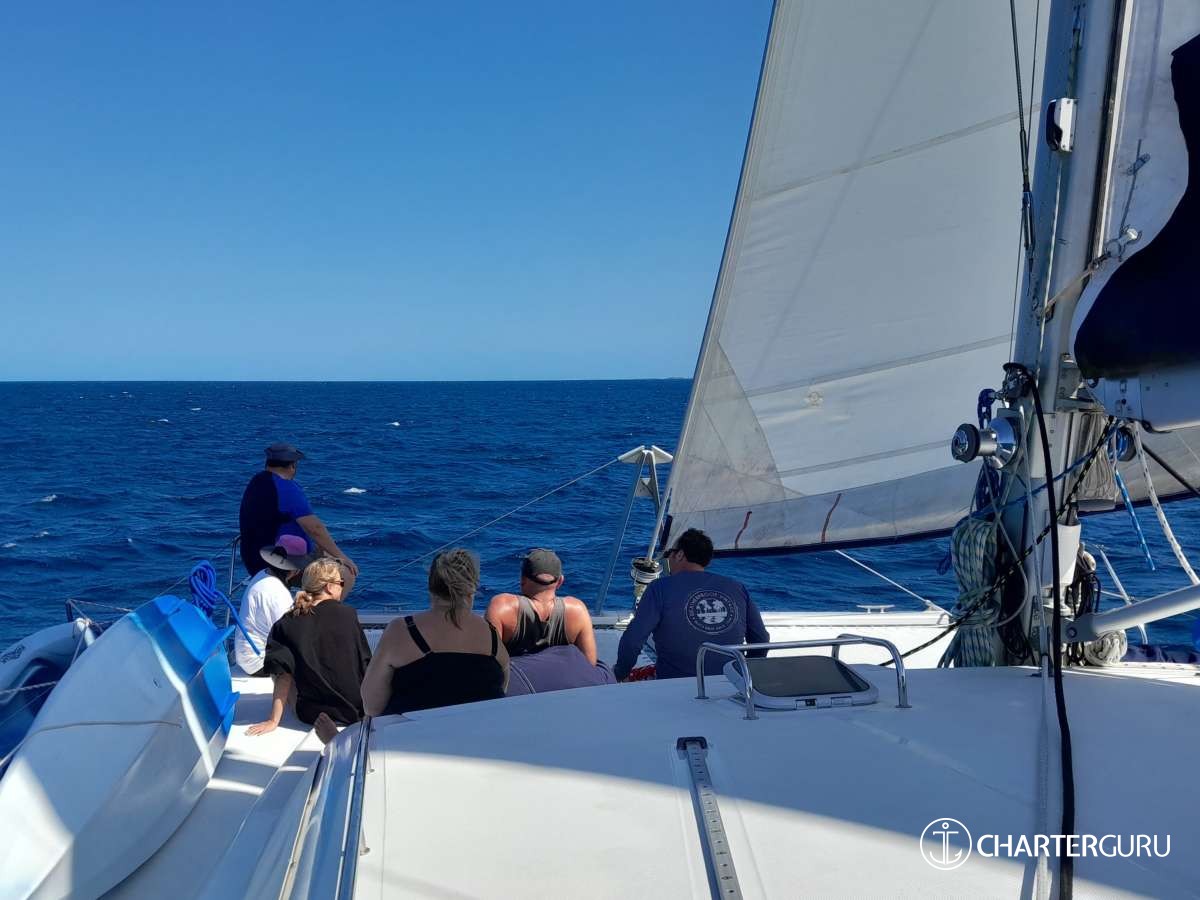 The catamaran is comfortable and has plenty of space, both out the front on the 'trampolines' and the shady area at the back by the cockpit where we enjoyed breakfast, lunch and dinner.