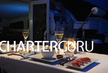 FOR CHARTERS OF 5 NIGHTS AND ABOVE, DINNER ON THE LAST EVENING IS REQUIRED TO BE TAKEN ASHORE AT CLIENT EXPENSE.