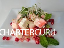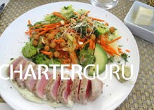The food onboard was excellent, fresh with great presentation and variety. We enjoyed every meal. Before your trip Geoff and Iza send you a questionnaire which covers everyone's preferences (food, drinks, allergies if any, etc.) and from there Iza develops a great menu. We enjoyed every meal and all were better than we found ashore.