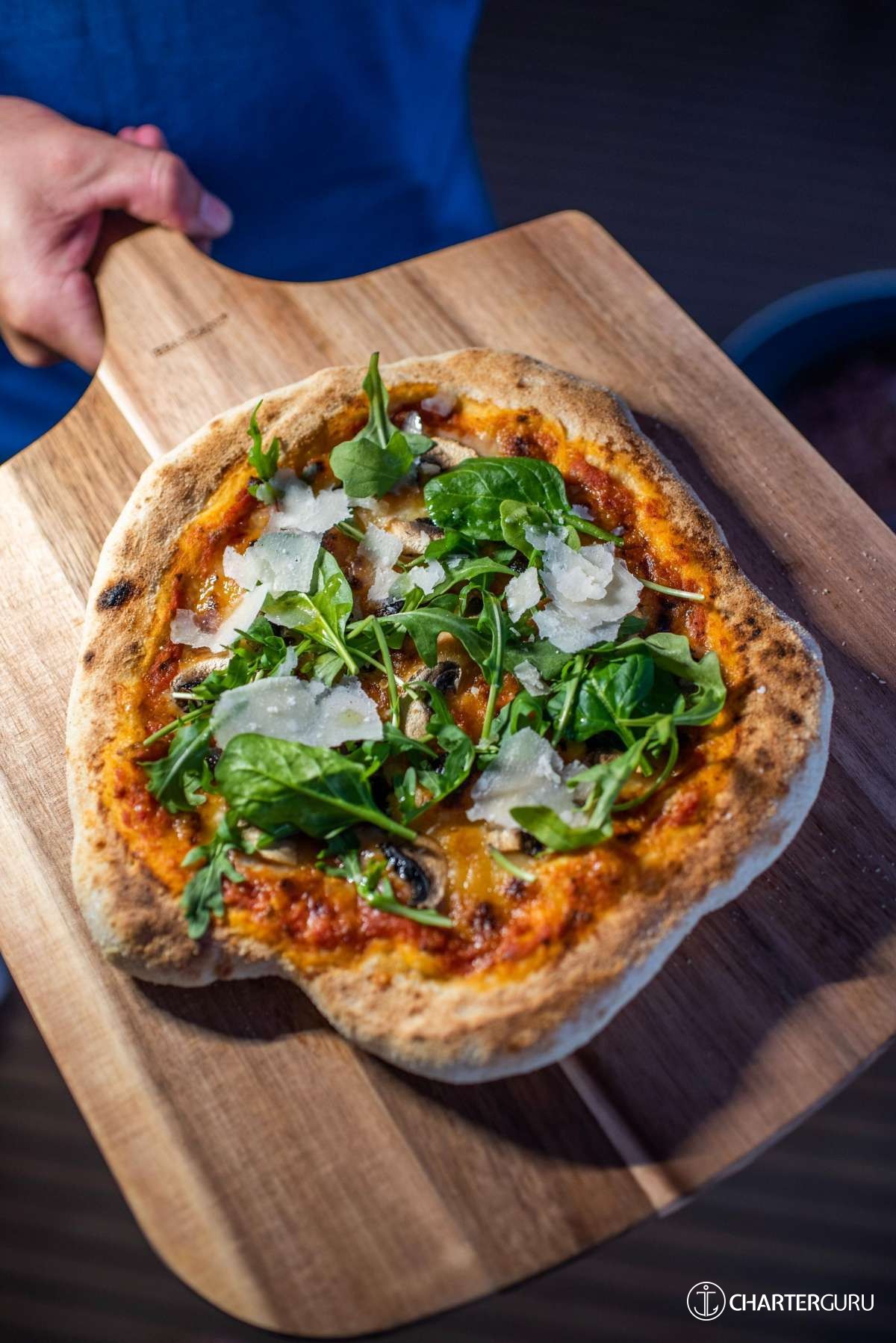 Pizza oven, Traeger grill, daiquiri machine, coffee/espresso station, ice maker, and water maker create a fully self-sufficient galley operation that appeals to food-focused charters.