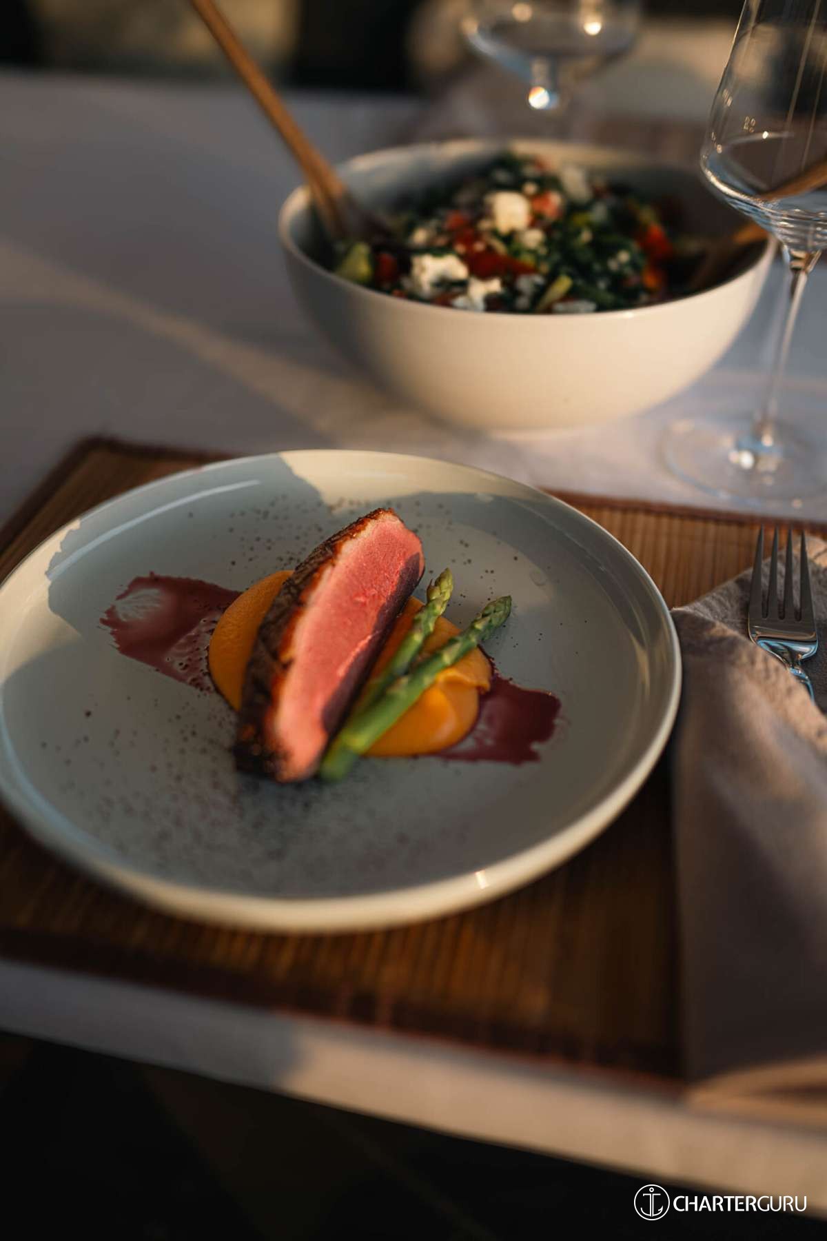 • Private Yacht & Service of the crew (captain, chef/first mate)
