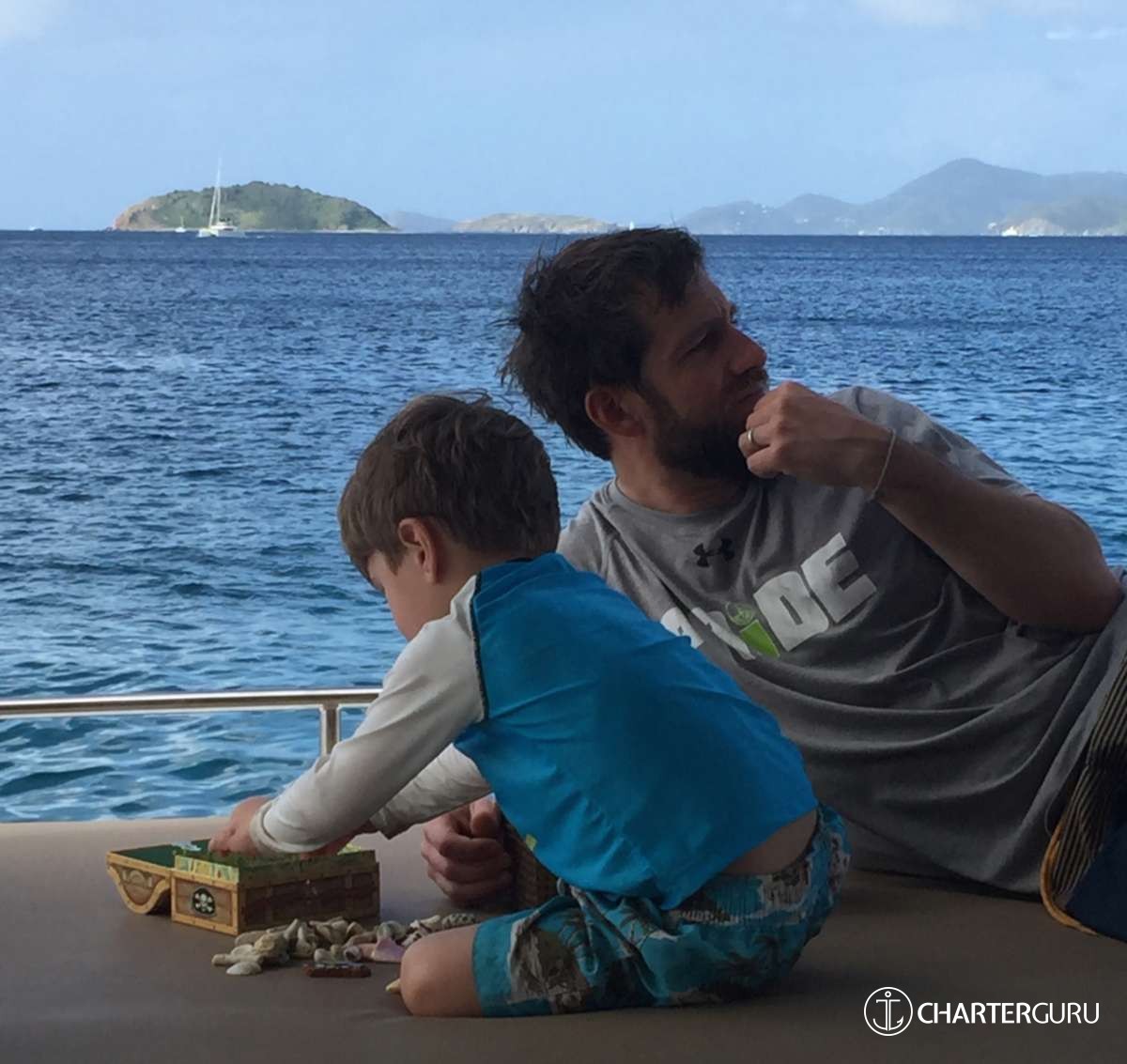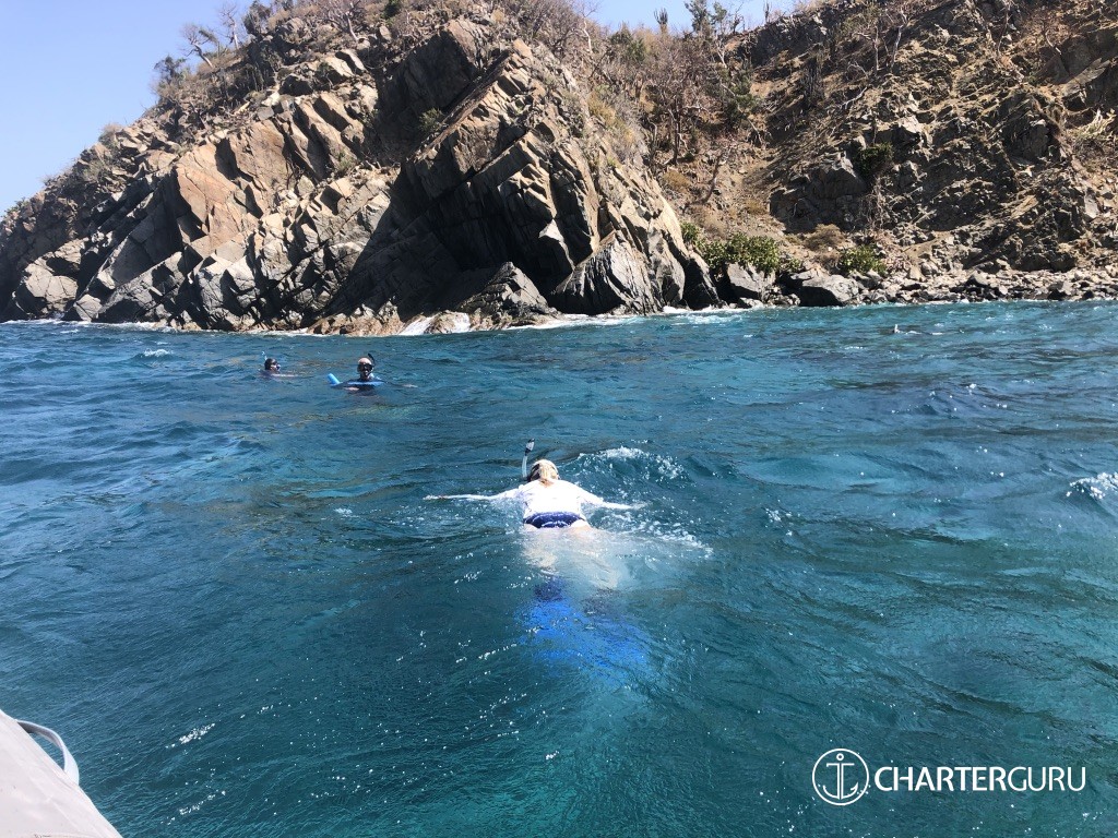 They organized a treasure hunt for our 4 year old grandson. Kate drew an amazing map based on the landscape of where we were, I think it was Peter Island. She burned the edges of the map and stuffed it into a bottle. They put it in the water at the front of the yacht so that it would float down and in front of my grandson allowing him to 'discover it'. Everyone jumped into the water and headed to shore. Poor Jason had to make at least 3 prior trips in to add additional clues and bounty. They turned our family trip into a magical adventure! The crews expertise was exceptional. They sometimes had some challenging winds to deal with. Jason handled the boat well in all conditions. Kate too.