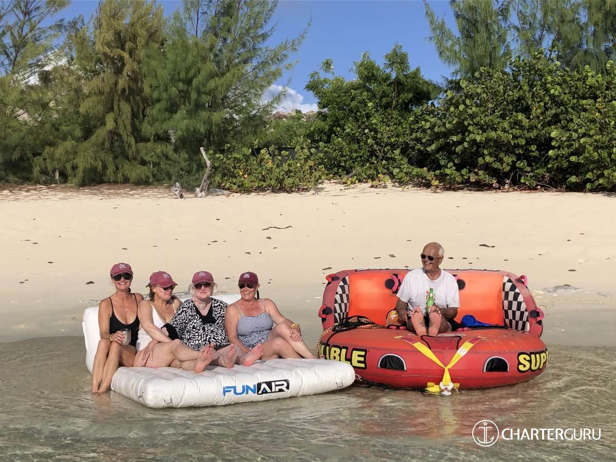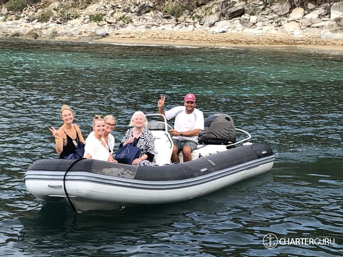 Join in for themed nights, cocktail parties, children games, sundowner treats and delicious meals. Get involved in the sailing of Foxy Lady with the enthusiastic advice given by your captain. Watch as your children enjoying a thrilling ride on the tube behind our large 16' tender, or play hide and go seek on the best floating toys ever! See them take an interest in the fascinating underwater world or learn first hand why the ocean glows at night. How would you like to catch (and release) a fish off the back of Foxy Lady, or partake in an amazing night swim to view the fish and stingrays attracted by our underwater lights?