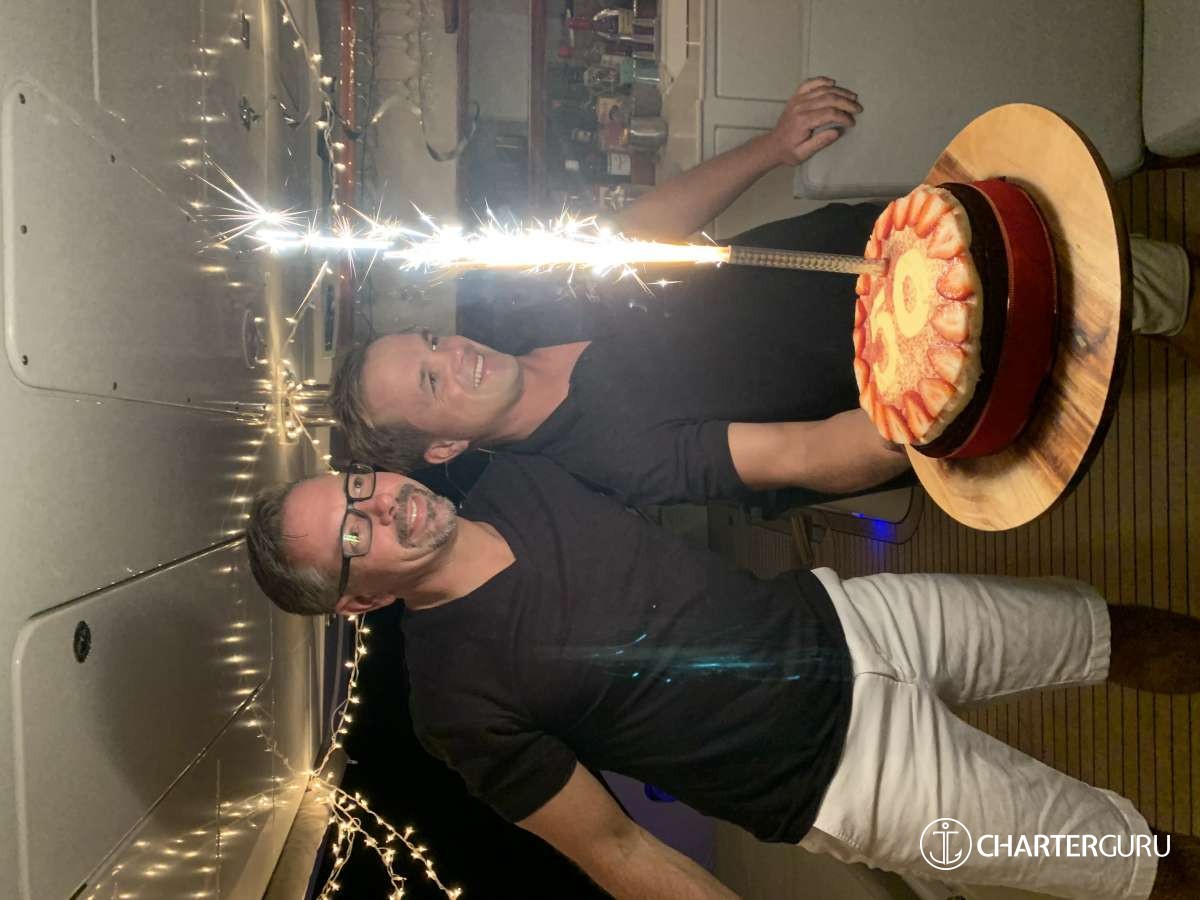 Kate and Jason did a fabulous job of keeping all of our rooms, the salon and their busy kitchen neat and clean. They were also amazing at hanging our towels each time we came out of the water and making sure the deck was clean at all times. This is our 5th time chartering and both Jason and Kate were hands down our favorite crew! This is the top captain and chef we have ever had on our private charters. They were both attentive to what we wanted to do while taking into account the conditions of that day.