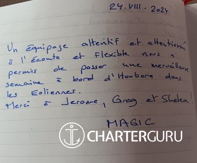 For a sailing catamaran like HOUBARA, the expected APA is 20% to 35% of the charter price (€6,800 - €11,900), making the charter cost €40,800 to €45,900. Exact amount will be confirmed after inquiry.