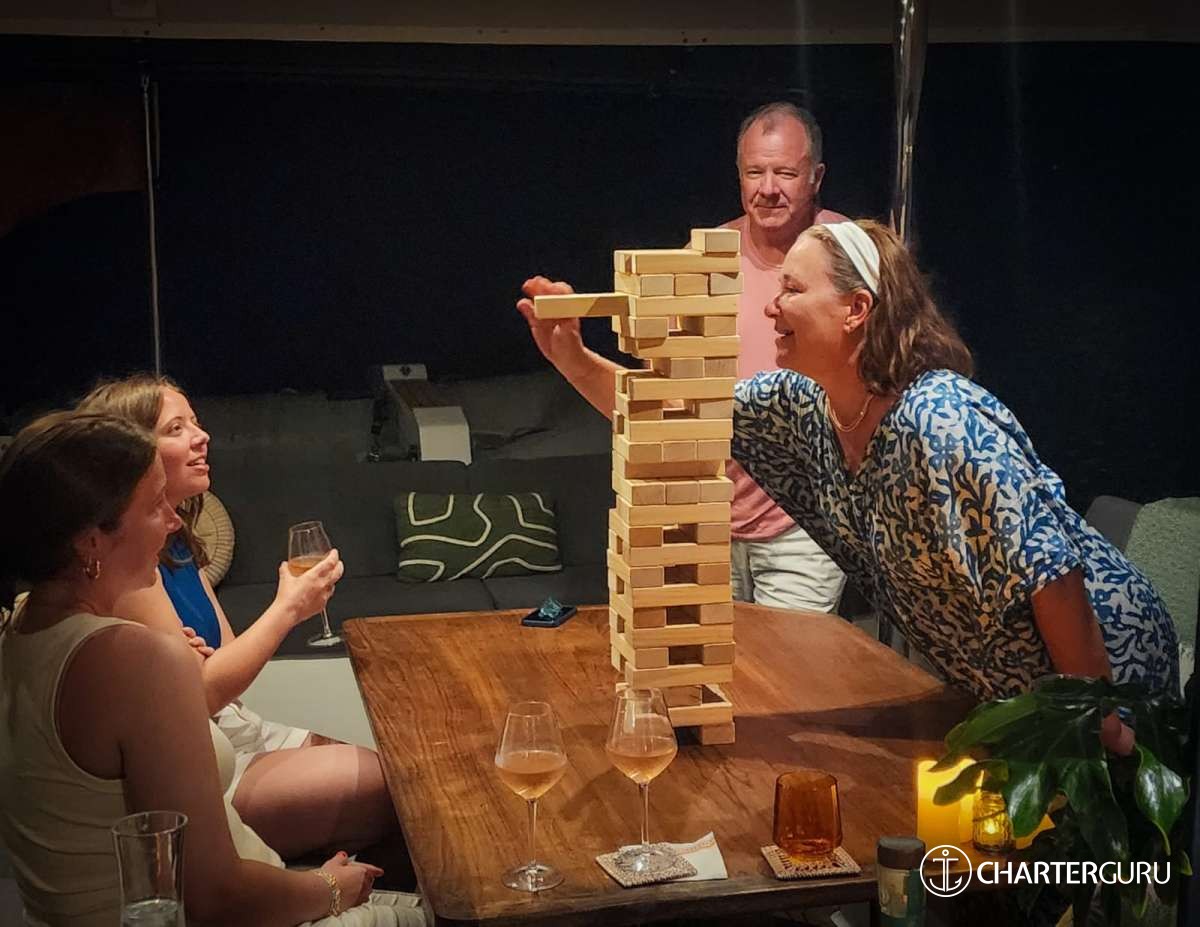 We also had a great time using the games on board — a few intense rounds of Clue got competitive quickly thanks to the two brothers in our group, and it added a fun, unexpected layer to our downtime after hours of snorkeling, island bar hopping, ship jumping, and more.
