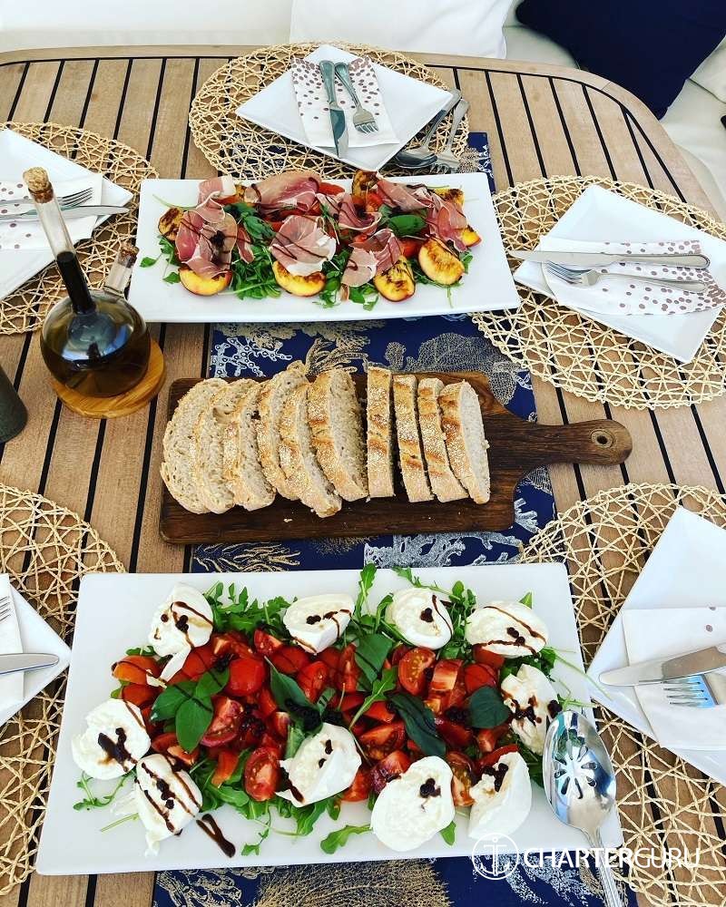 INDIGO is introduced primarily as a power catamaran. The central space of the yacht is the main saloon, which connects to the aft deck. The aft deck features a variety of seating areas and that's where most of the meals are served. The tastefully decorated cabins are connected by stairs to the main saloon - roomy, comfortable and pleasant. The cabins offer designer mattrace beds and feature ensuite bathrooms. Multiple portholes connect you with the outside world.