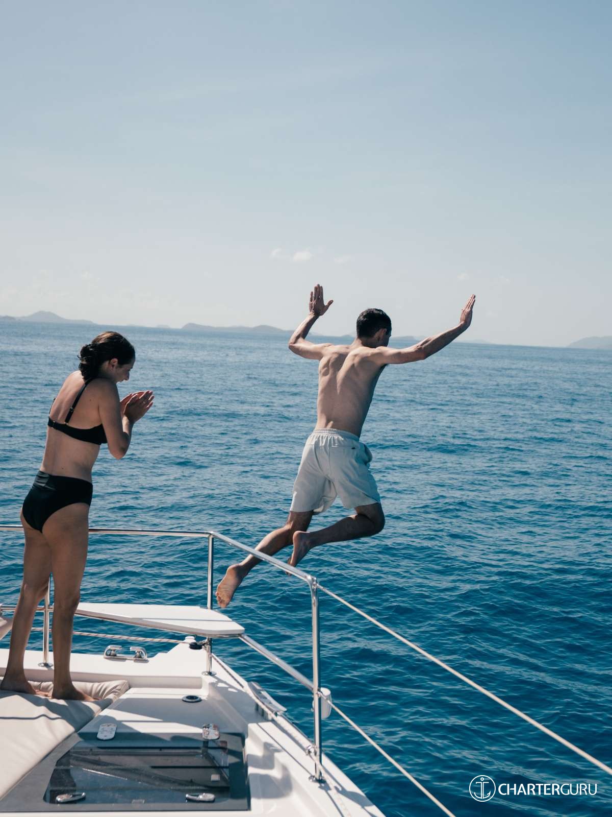 Immerse yourself in unparalleled luxury with our yacht's lavish amenities, including luxury linens, stemware, and exquisite table settings. After thrilling water sports and captivating dives, savor world-class meals in the spacious dining area and enjoy custom cocktails prepared by our professional crew. Your dreams of a luxurious and adventure-packed getaway come true with the Bali 5.4.
