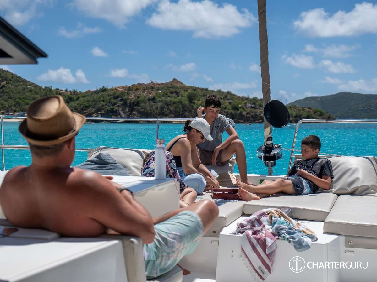 Reeve and Stewart were amazing! Our first time sailing with them (of many years sailing in the Virgin Islands) and they made sure we had a fantastic time. Reeve cooks a fantastic meal and Stewart pours a mean painkiller - we are heading home very well looked-after. Lots of sailing fun, diving competitions, and some mean card and board game playing at anchor.