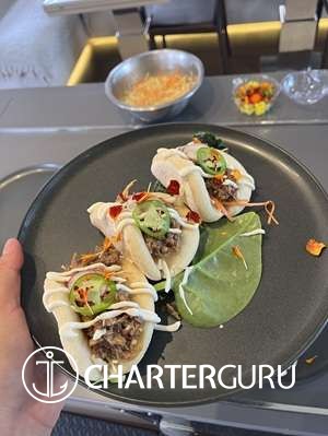 Chef Loïc Doan Jausoro brings a wealth of experience and creativity to the Lagoon Seventy8, Jan’s FeLion. At 25 years old, he has built an impressive culinary career, including training at Spain’s top culinary school and working in Michelin-starred restaurants across the globe. With two successful charter seasons aboard the previous Jan’s FeLion(Lagoon 64), Loïc has already proven his ability to deliver exceptional dining experiences