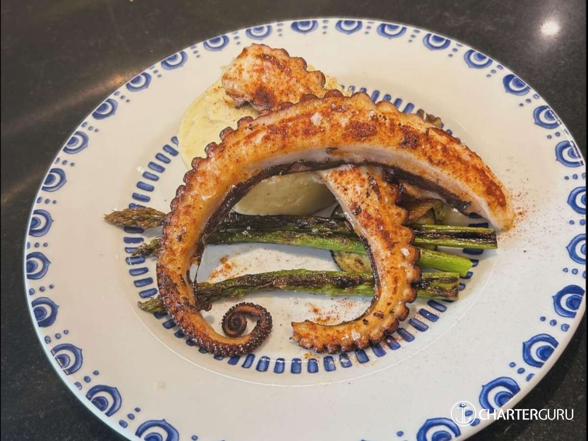 In 2023 Jura II spent the winter in La Coruna, Spain. While there, the owners discovered many wonderful restaurants in the city. Returning to one restaurant in particular which they had enjoyed, they met the owner and chef, Jacobo. In conversation, Jacobo confessed a desire to go to sea as a Chef aboard a private yacht. Two months later Jacobo was aboard Jura II!