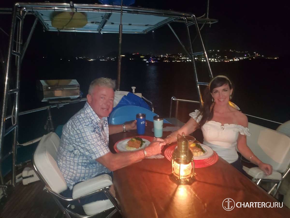 Regina and I had the trip if a life time. Sara and Justin were great. The food was amazing and they made sure we always stayed in calm waters every night. The way they really were prepared for all of our special requests including making us great desserts such as Key Lime pie and creme brulee was fantastic. They even mastered my perfect Manhattan and made Regina and I delicious Arancini as an app! When we wanted to eat outside they made us a table out of the SUP that was perfect! They are a lot of fun with no drama and we're always accommodating to our requests! 5 Stars!
