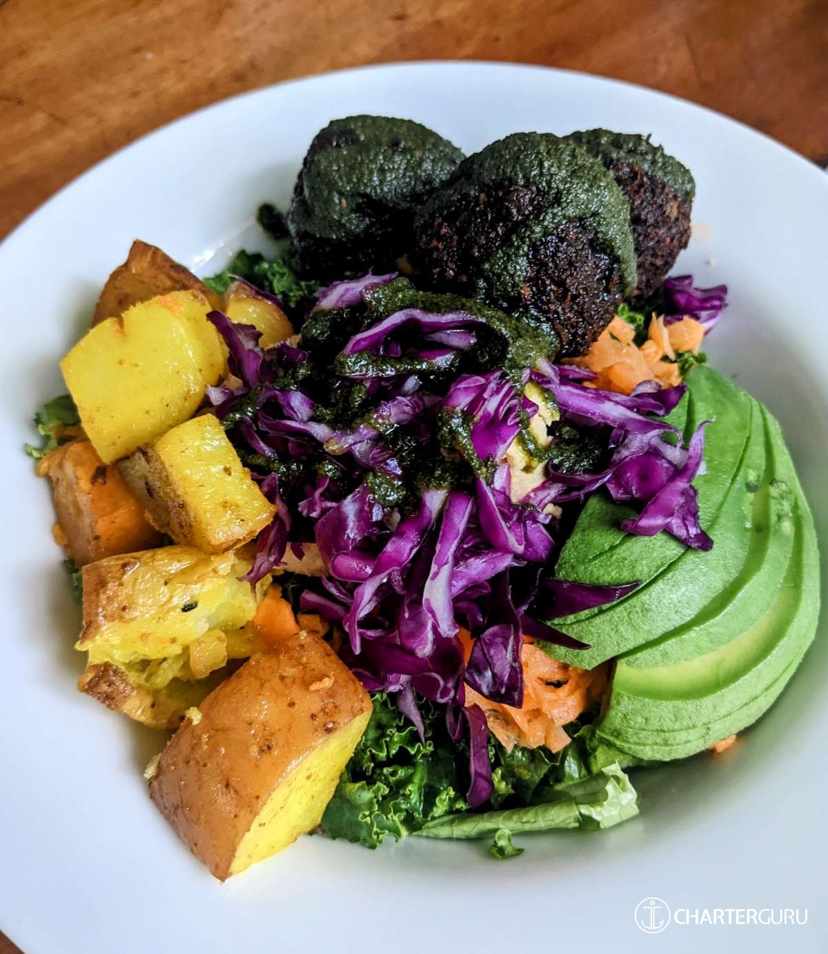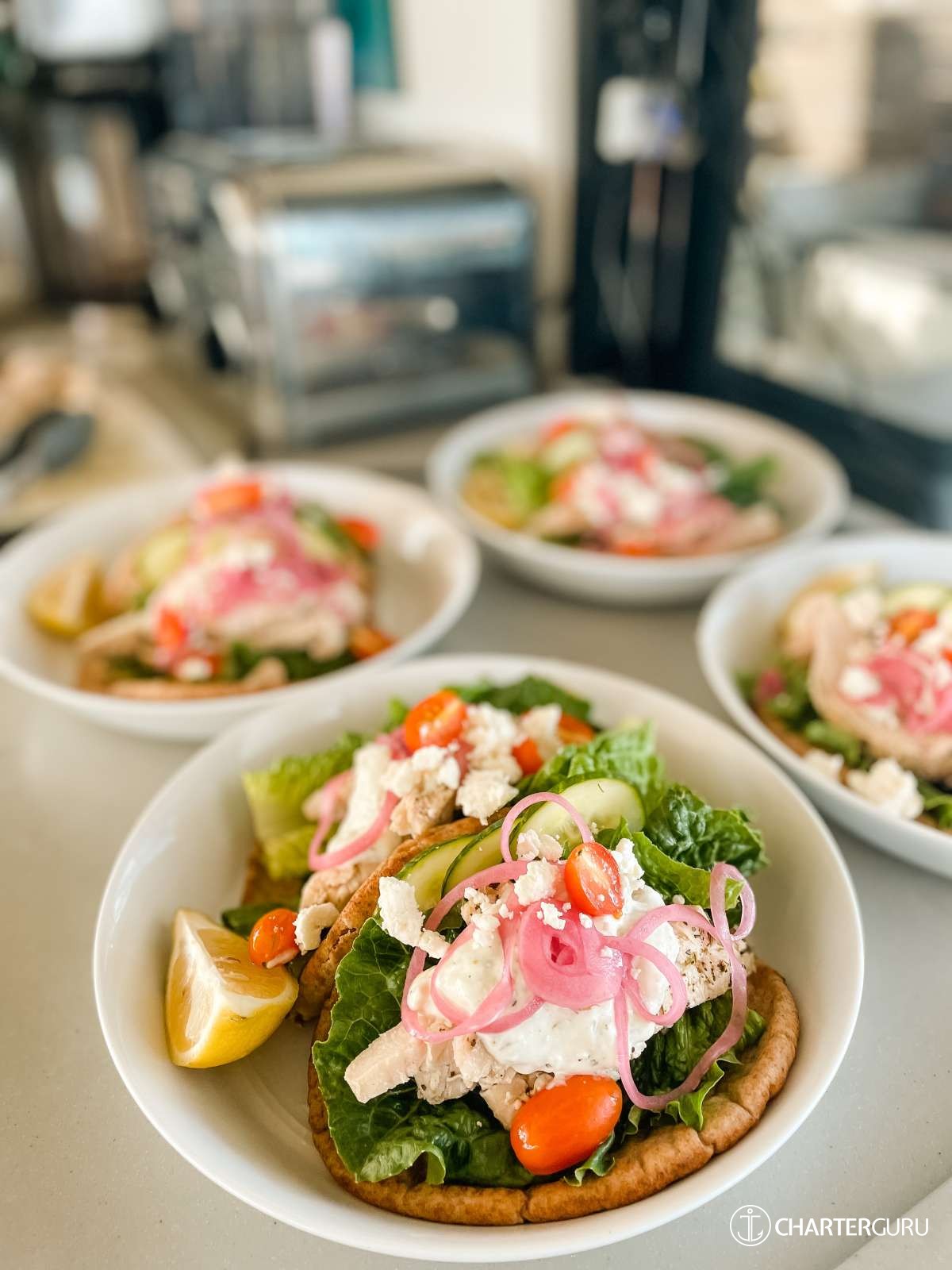 Chef Kristen Born and raised in Maryland, Kristen developed her love for the ocean sailing with her family on the Chesapeake Bay. Her passion for cooking has always been part of her travels, whenever she visits somewhere new she immerses herself in local food traditions. After taking a break from her career as a software engineer to travel the world, Kristen's cooking career began during the pandemic when she worked as a chef at an eco-lodge in Colombia, preparing farm to table plant based meals. She later spent summers in Costa Rica at wellness retreats creating health-conscious meals. While building an app to teach sourdough baking, she was able to learn the skill on her own and now she loves finding a way to incorporate sourdough in any baked goods. Now, Kristen has combined her two passions of cooking and the ocean. She's excited to share her love of healthy and nourishing cuisine with her guests. When she's not cooking in the galley, Kristen is out with Harry exploring the world; hiking volcanoes, cycling, skiing, scuba diving and surfing wherever adventure calls.