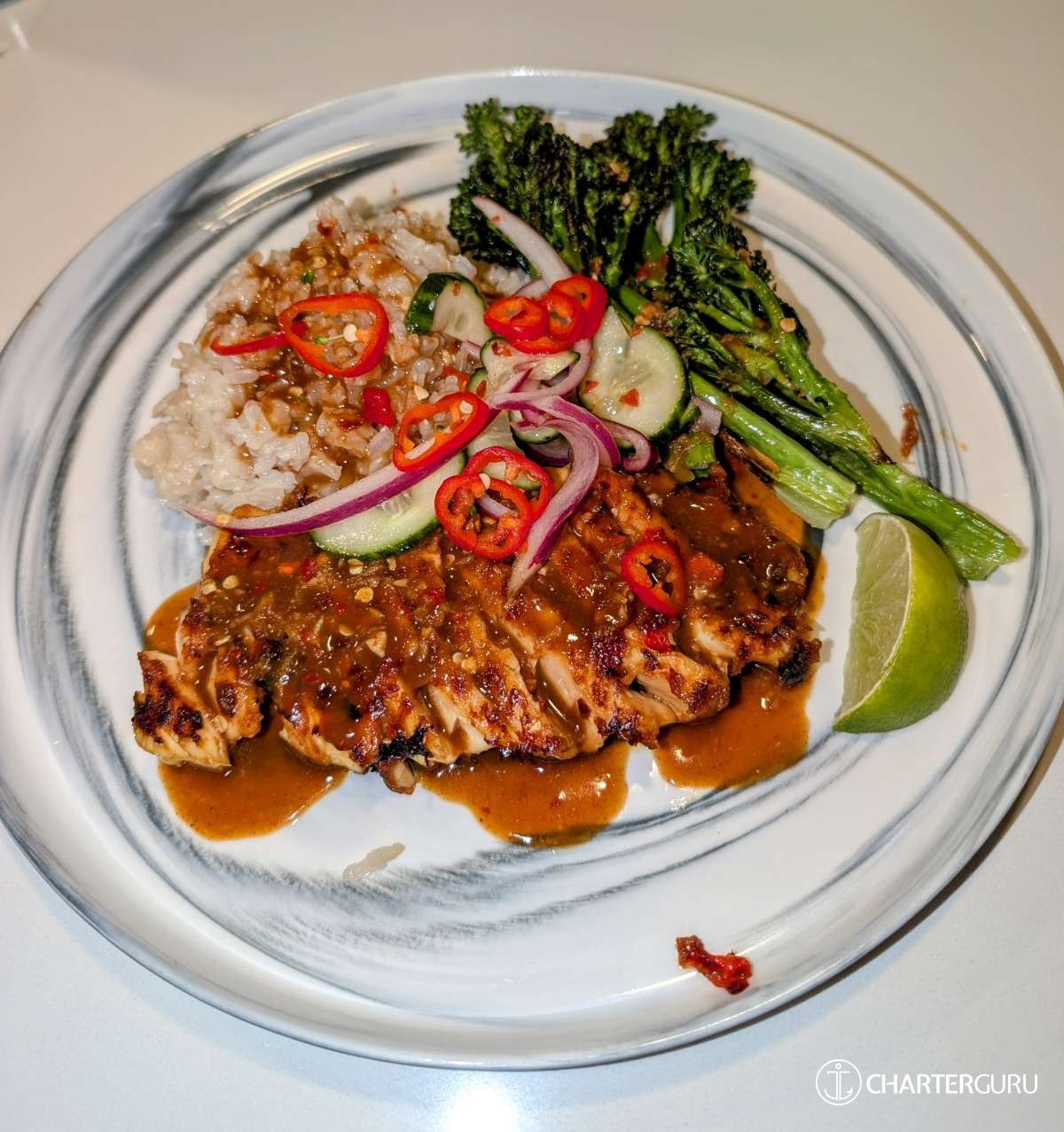 “Jake and Mackenzie, there are not enough adjectives to explain how AMAZING you both were! Kind, warm, fun, energetic and knowledgeable. The food was incredible (and we are not easy to cook for with allergies and vegetarians amongst us). Mackenzie was so creative. Her presentations were gorgeous. We ate like royalty. Our older daughter - who has the allergies - was thrilled, as were we all. And Jake was a blast and has good karma as we always found the best mooring spots! He was always happy to teach us about the boat and about sailing, and energetically facilitated all the activities of our active family. Both of them tirelessly played games and swam with us and the girls in their down time. Our younger daughter cried all the way to town after they dropped us off because she was missing them so much. We would absolutely book another trip with this duo!”