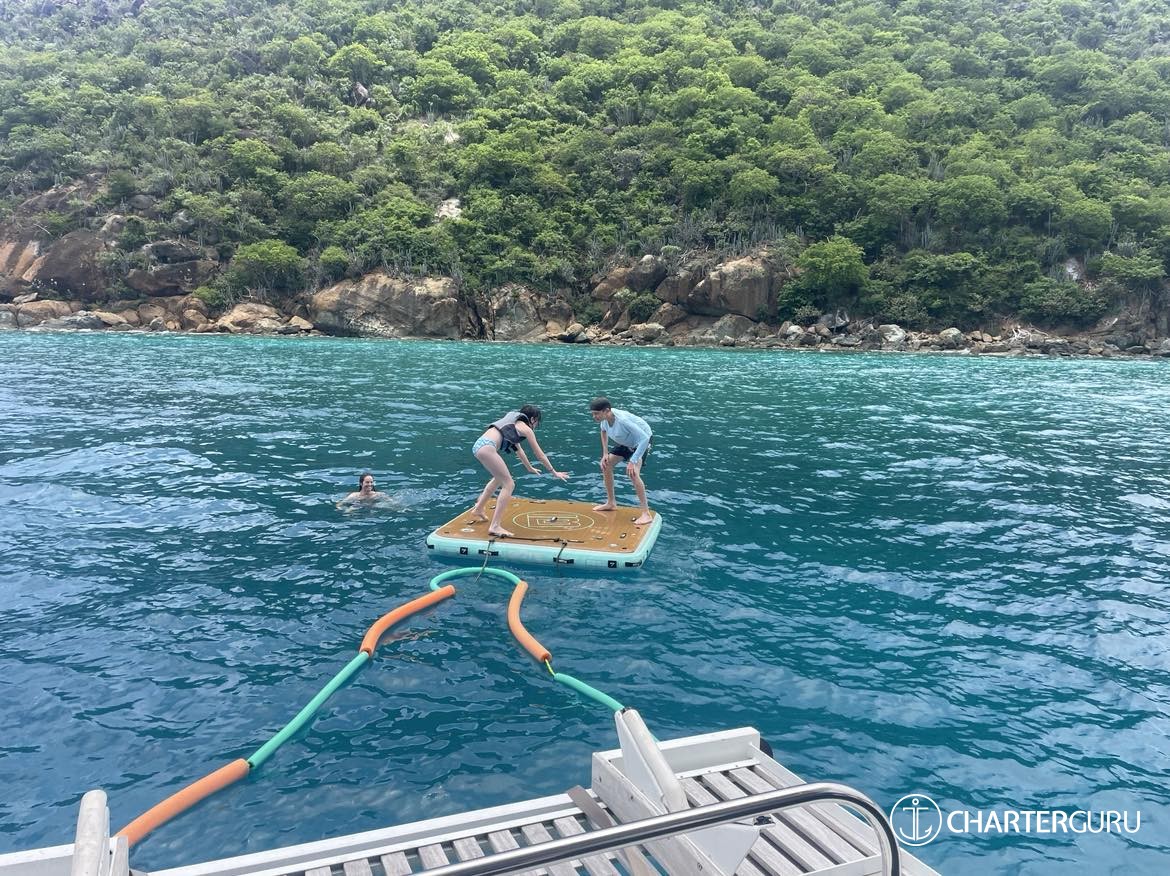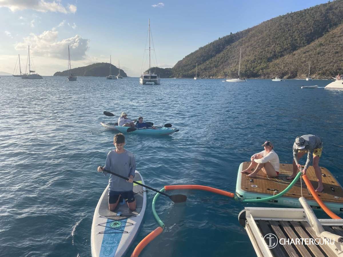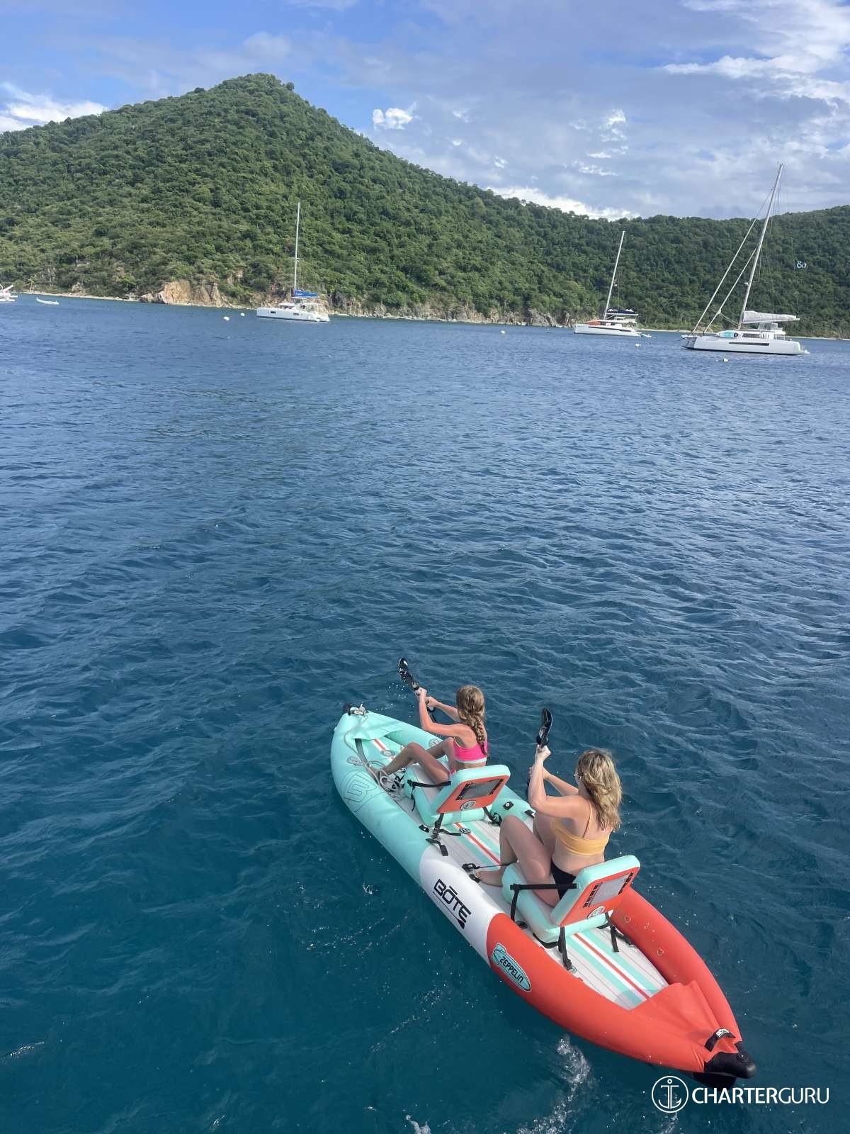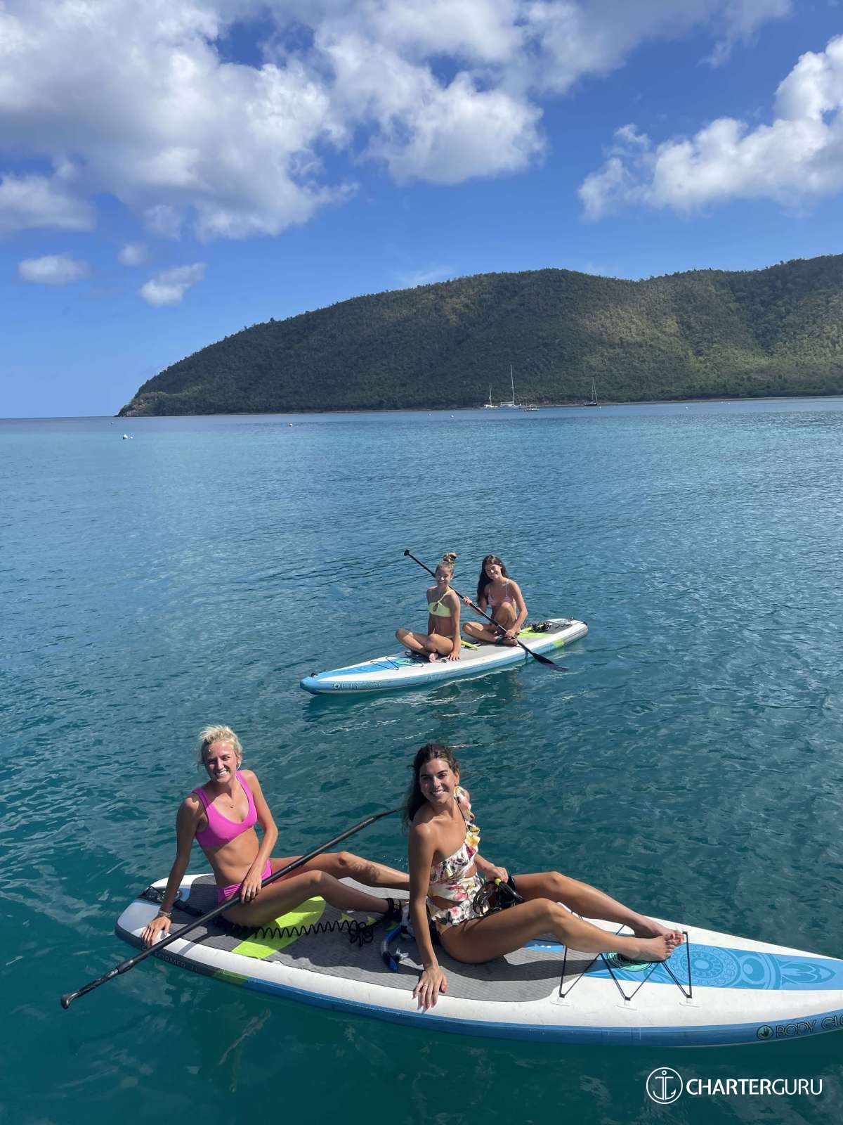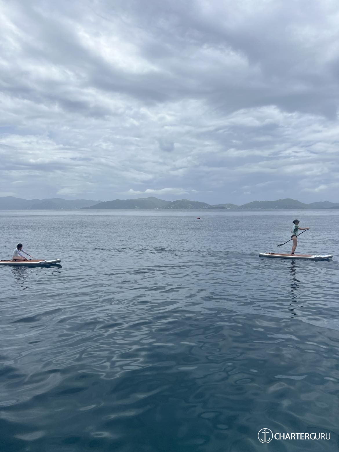 For our underwater adventure seekers, Karma is fully equipped with scuba diving and snorkeling equipment, and a hydraulic swim platform for easy access in and out of the water. Above the water, paddle along on our SUPs or our two person kayak, or take a load off on the floating dock Lily Pad.
