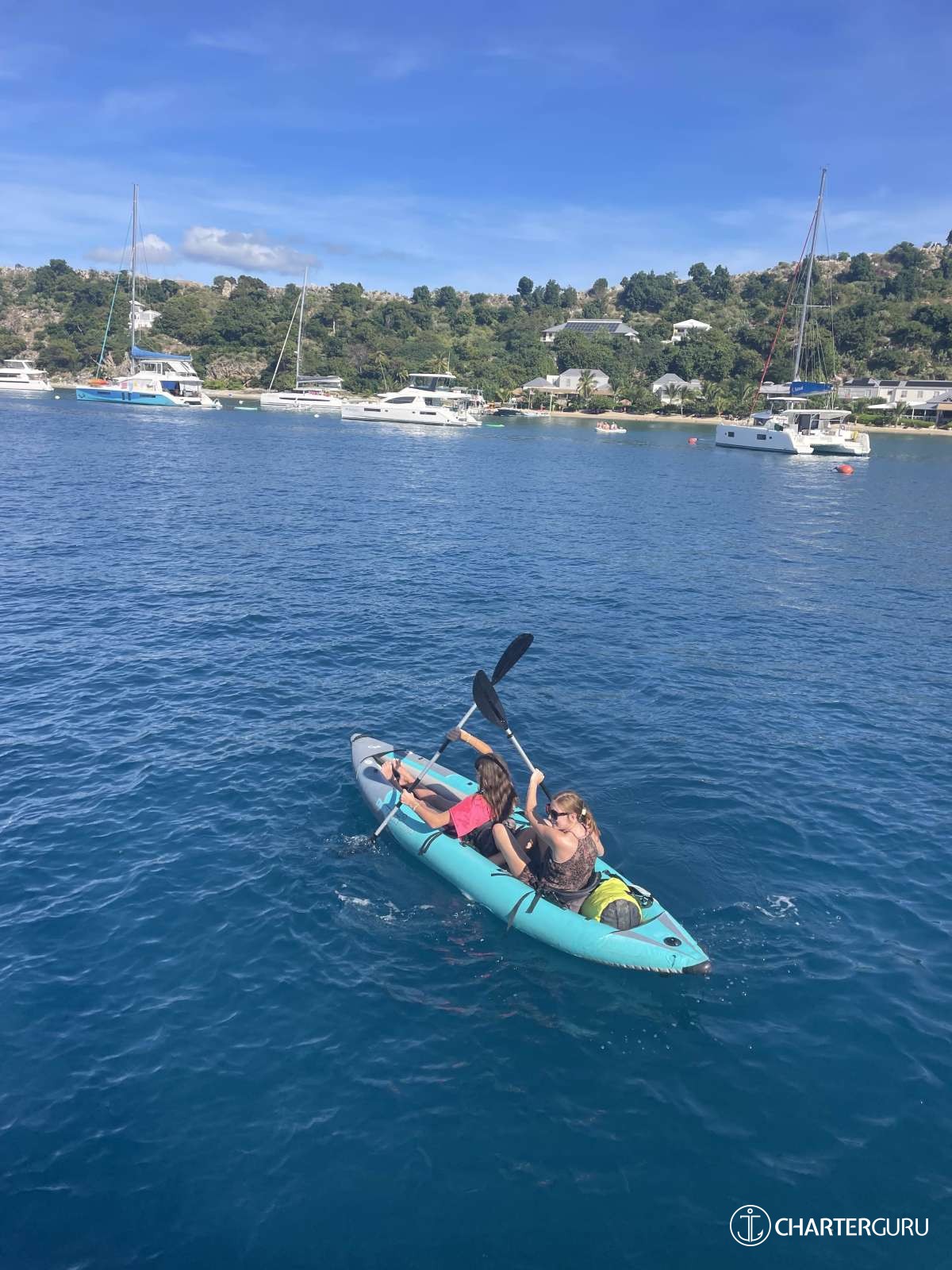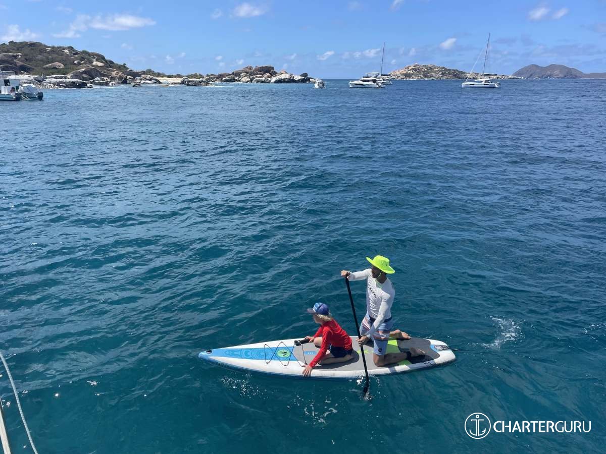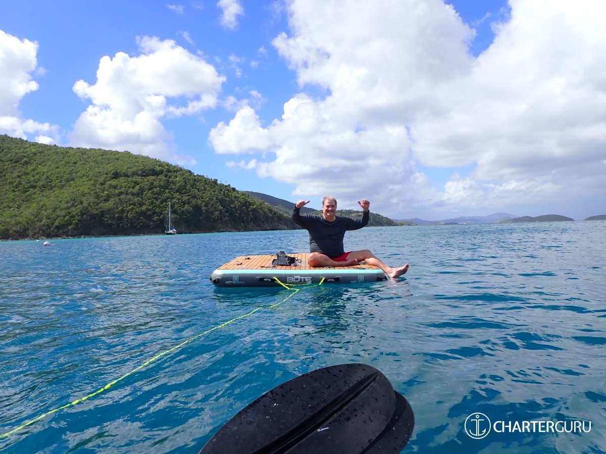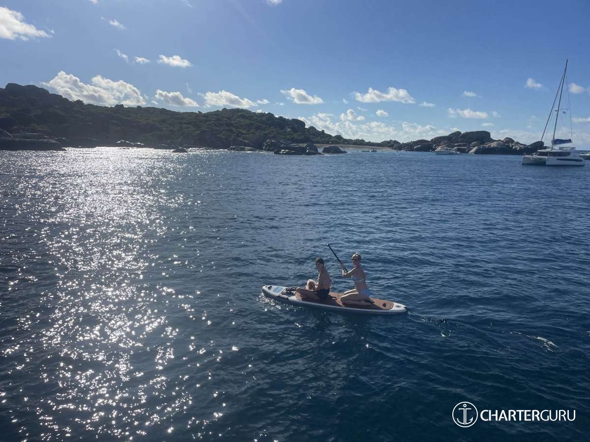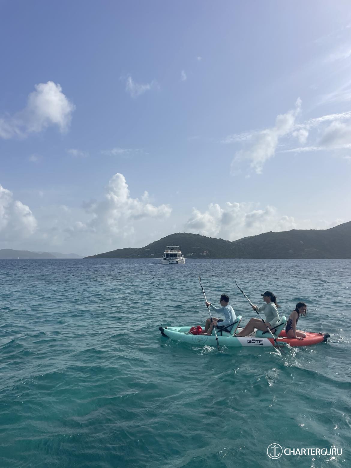 For our underwater adventure seekers, Karma is fully equipped with scuba diving and snorkeling equipment, and a hydraulic swim platform for easy access in and out of the water. Above the water, paddle along on our SUPs or our two person kayak, or take a load off on the floating dock Lily Pad.