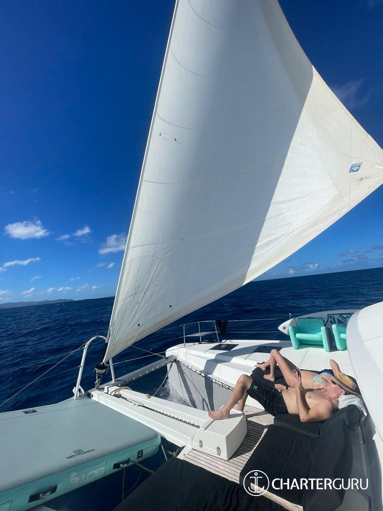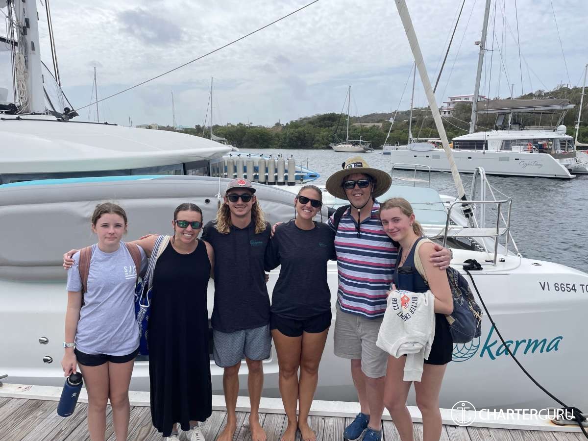 Welcome to S/Y Karma, an award winning Lagoon 50 and home of your next amazing sailing vacation. Offering the highest levels of luxury, comfort, and extravagance, this cruising catamaran is the perfect yacht for your friends and family. Karma offers multiple social areas including the flybridge with 360 degree ocean views, the spacious cockpit and salon with easy interior and exterior access, and the foredeck lounge where you can bask in the Caribbean sun.
