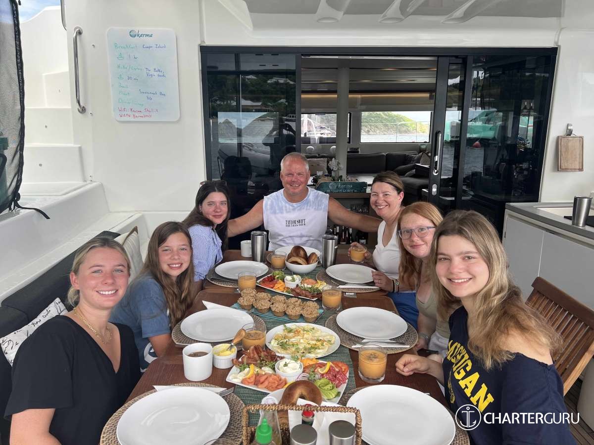 Your hospitality is superb!! Karma is such a great boat to entertain. Hannah's cooking has been so delicious. Tom's expertise in everything has been amazing. We have had the most wonderful time this week. You have made it one of our most memorable vacations!!
