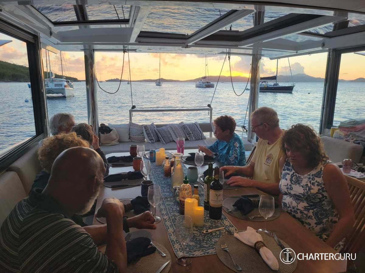 Enjoy a relaxed evening onboard before your charter begins.